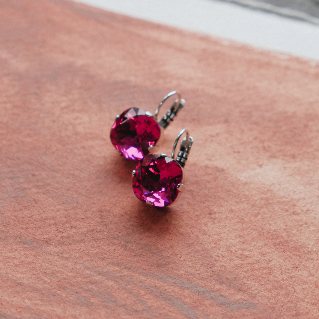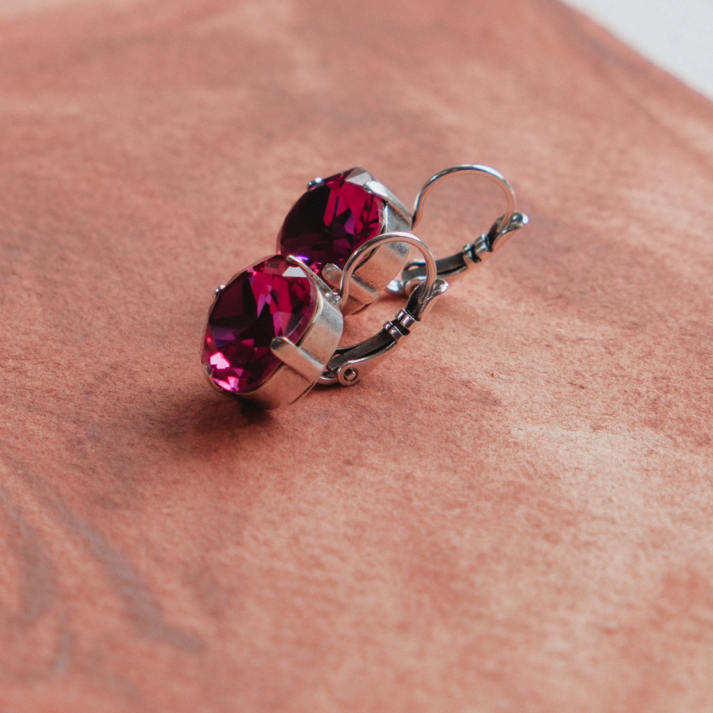 Clustdlysau clasurol Cwt Tatws. Carreg Swarovski ar gefn arian platiog.