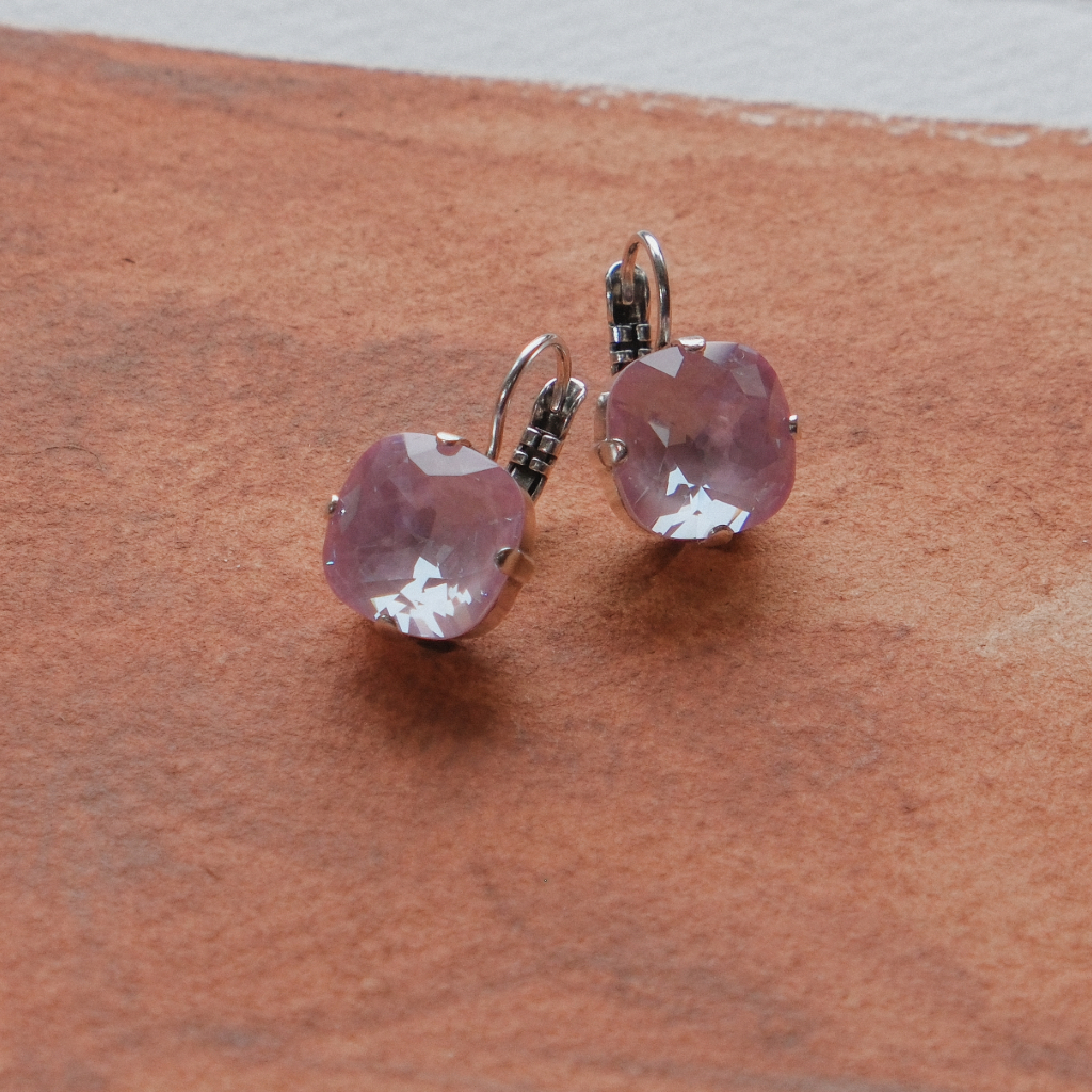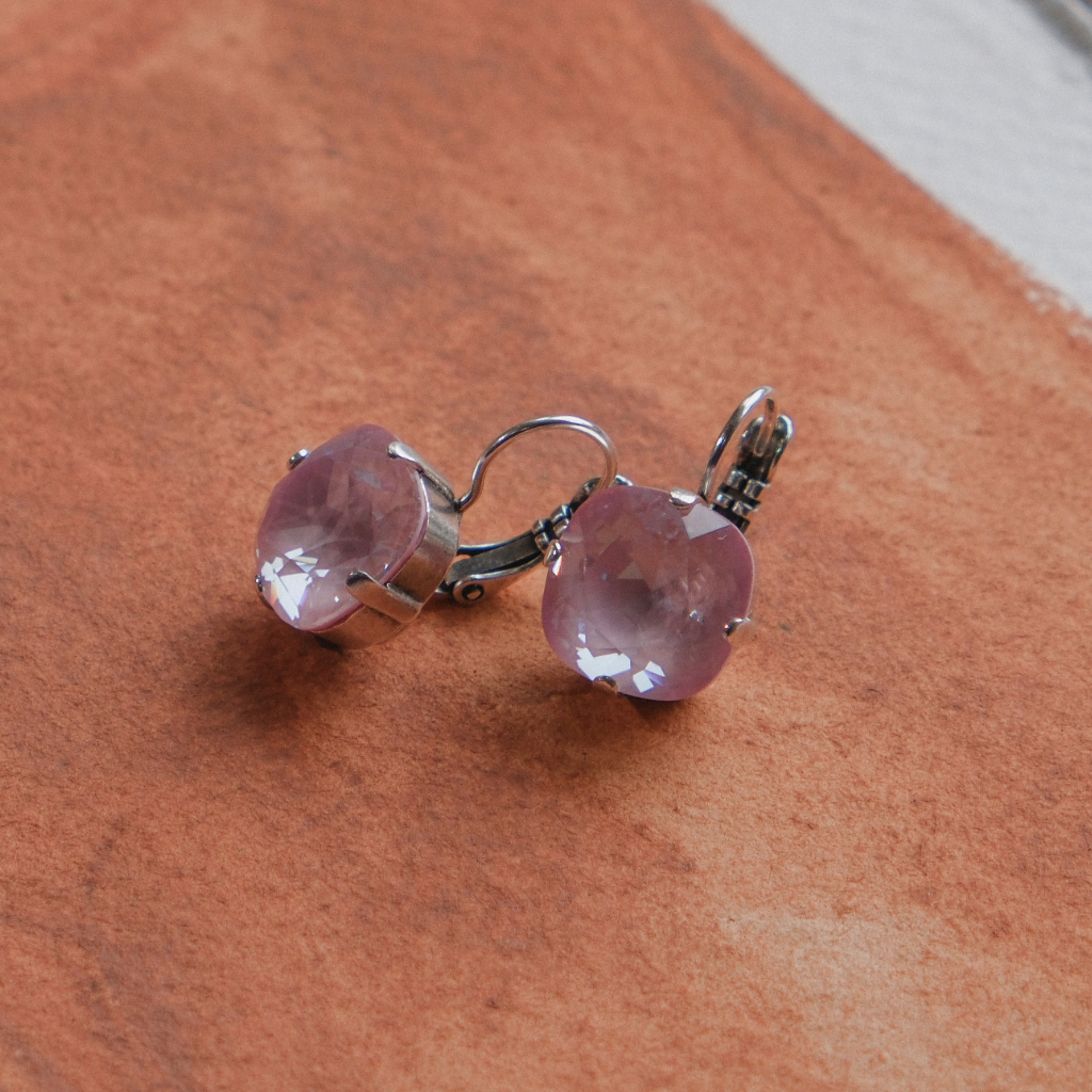 Clustdlysau clasurol Cwt Tatws. Carreg Swarovski ar gefn arian platiog.
