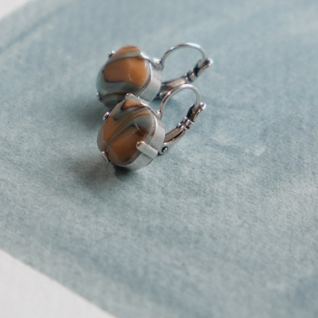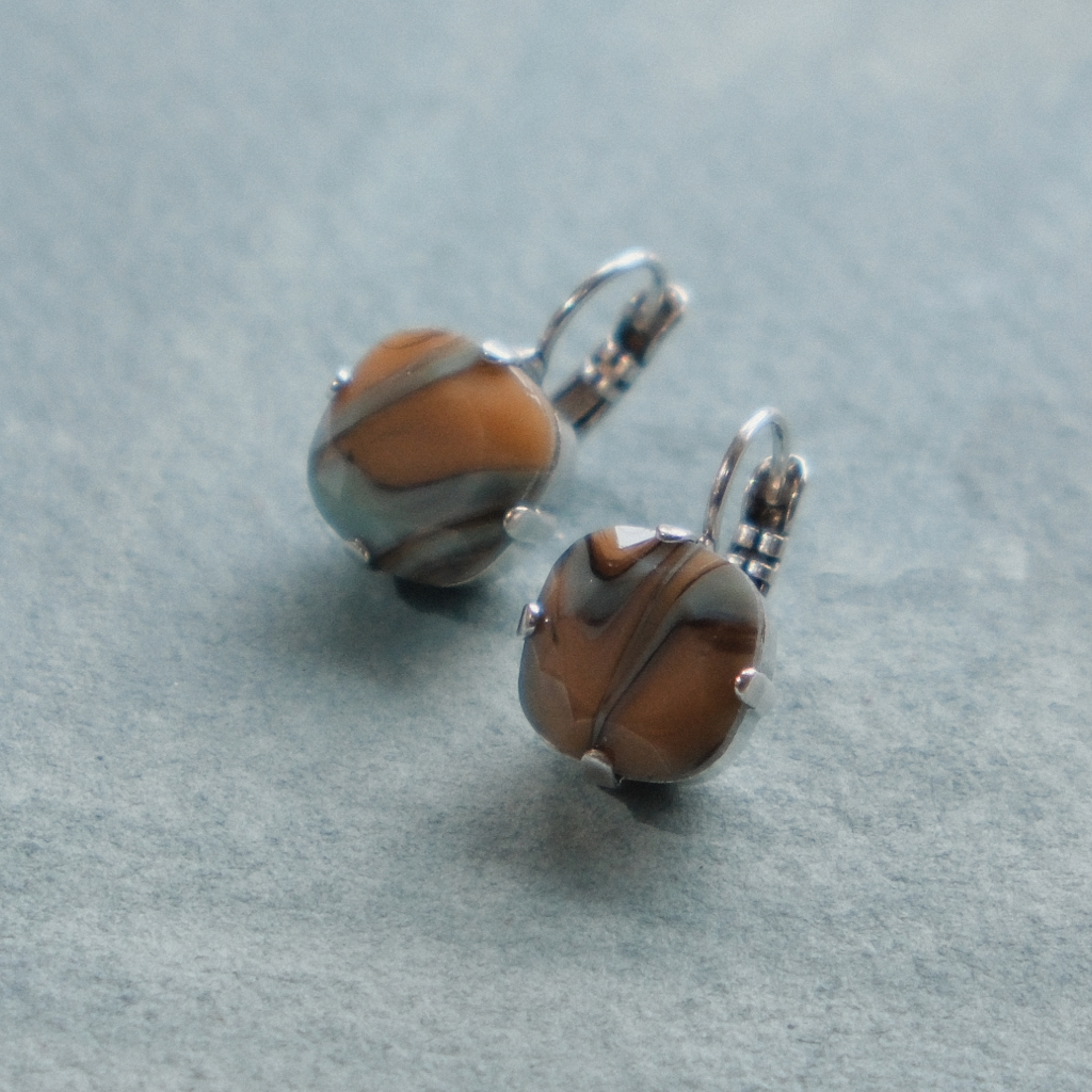 Clustdlysau clasurol Cwt Tatws. Carreg Swarovski ar gefn arian platiog.