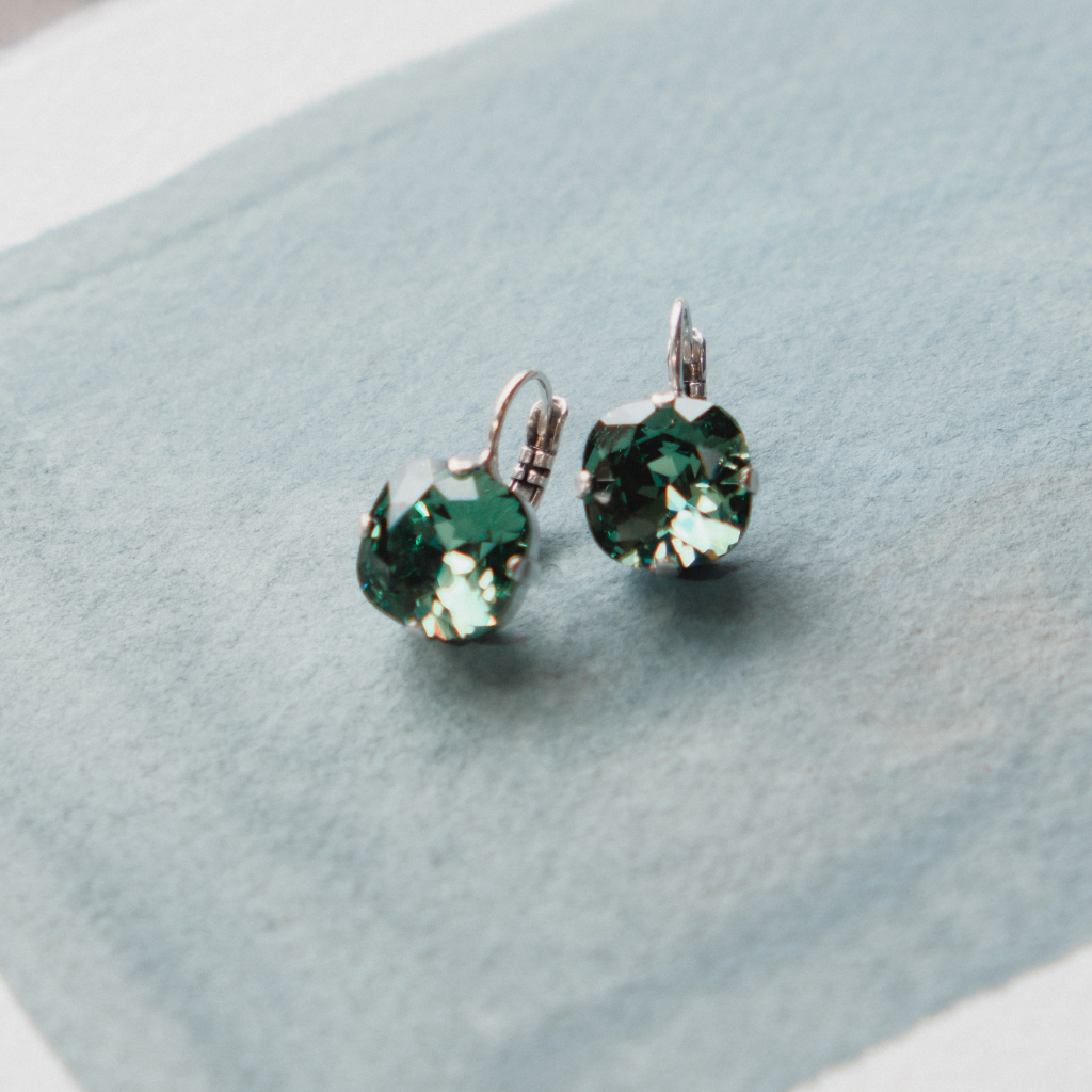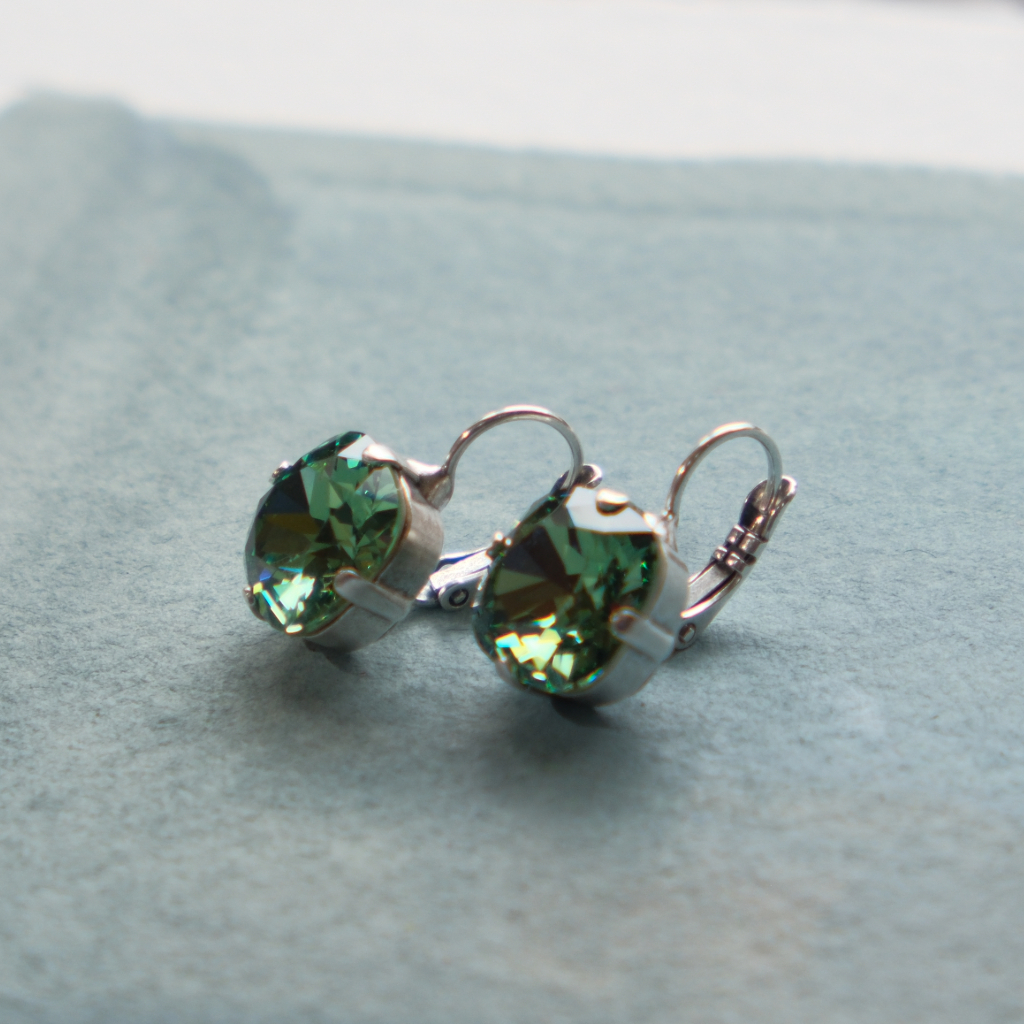 Clustdlysau clasurol Cwt Tatws. Carreg Swarovski ar gefn arian platiog.