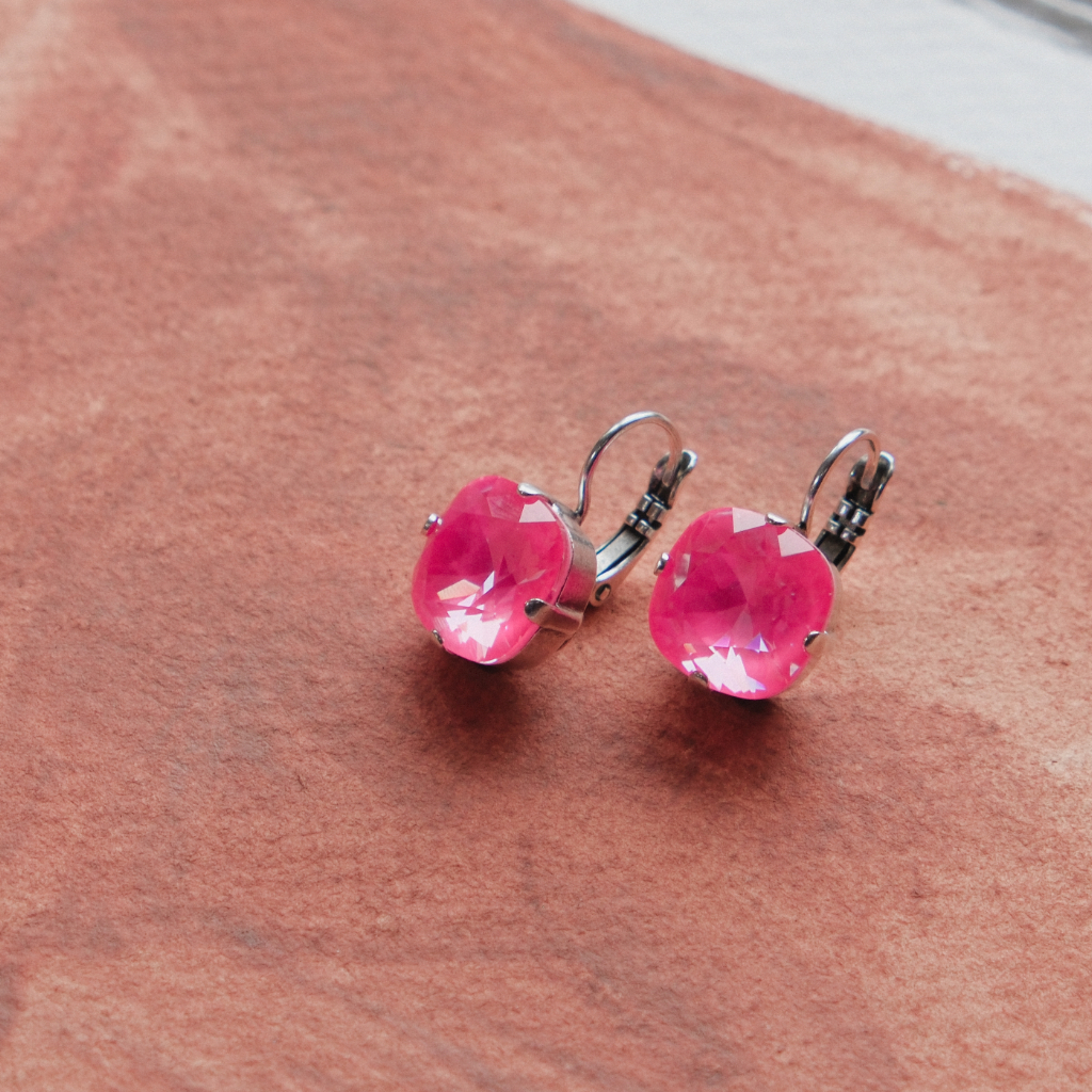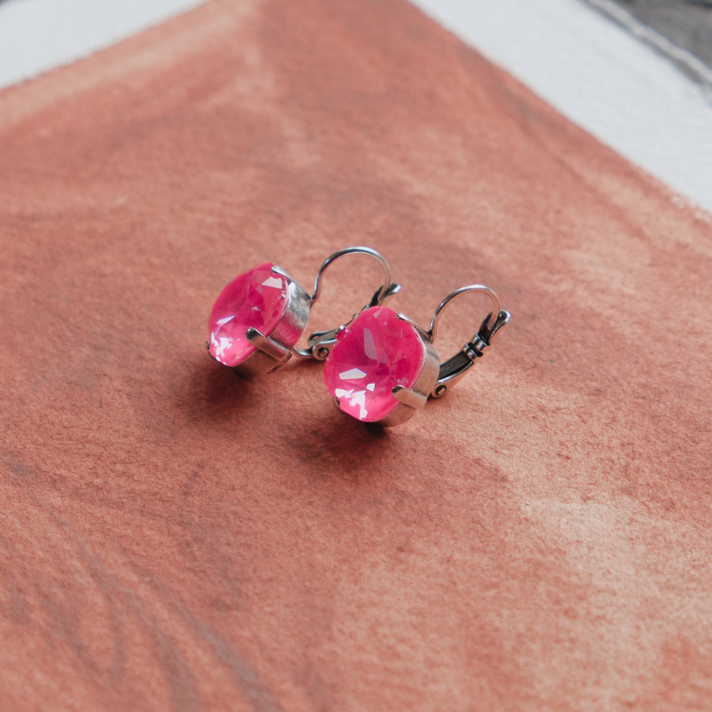 Clustdlysau clasurol Cwt Tatws. Carreg Swarovski ar gefn arian platiog.