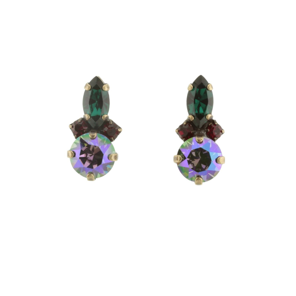 Clustdlysau pin efydd syml gyda strass disglair. Perffaith ar gyfer gwisgo bob dydd.