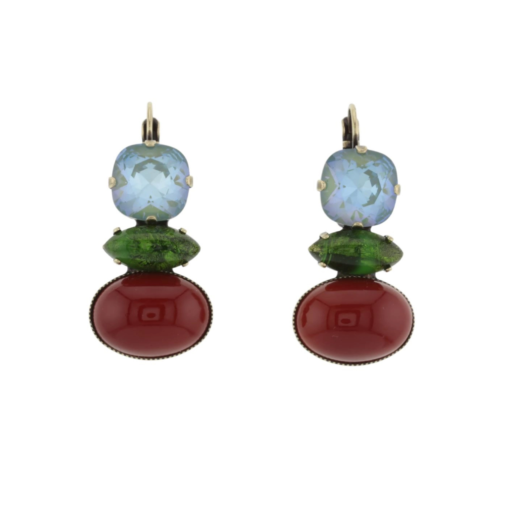Clustdlysau efydd cain gyda strass Swarovski a cherrig gwydr llyfn.