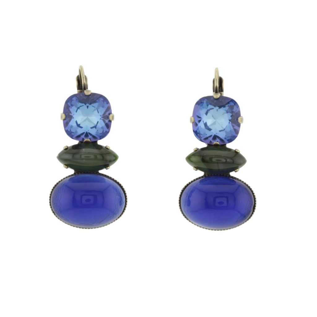 Clustdlysau efydd cain gyda strass Swarovski a cherrig gwydr llyfn.