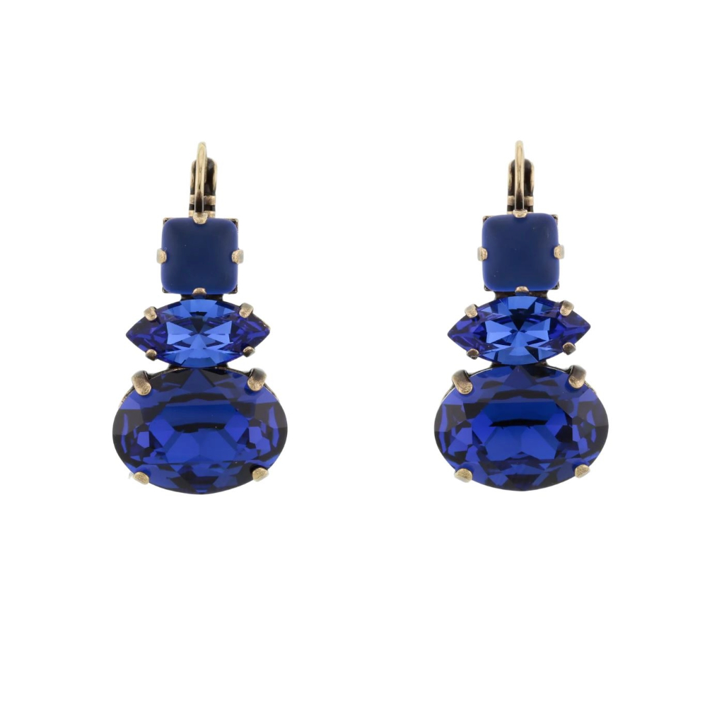 Clustdlysau efydd cain gyda strass Swarovski a cherrig gwydr llyfn.