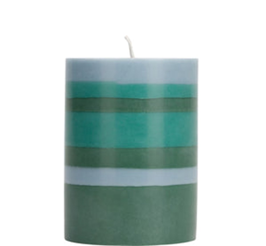 Ychwanegwch liw a chynhesrwydd i unrhyw ofod gyda’r canhwyllau piler streipiog yma. Wedi eu gwneud o gwyr stearin o darddiad llysieuol, a wic cotwm. Amser llosgi 36 awr.