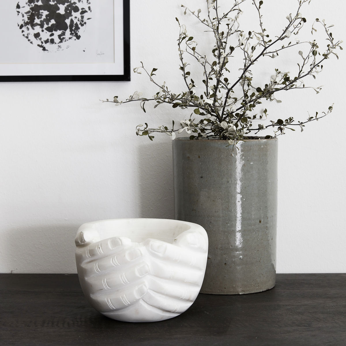 Desgl dwylo marmor gwyn. Hyfryd.