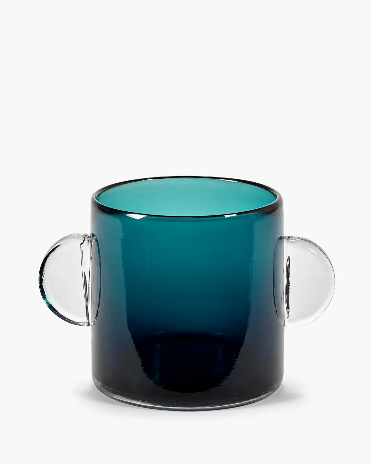 Fas gwydr wedi ei chynllunio gan Marie Michielssen ar gyefer ei chasgliad Gwynt a Thân.