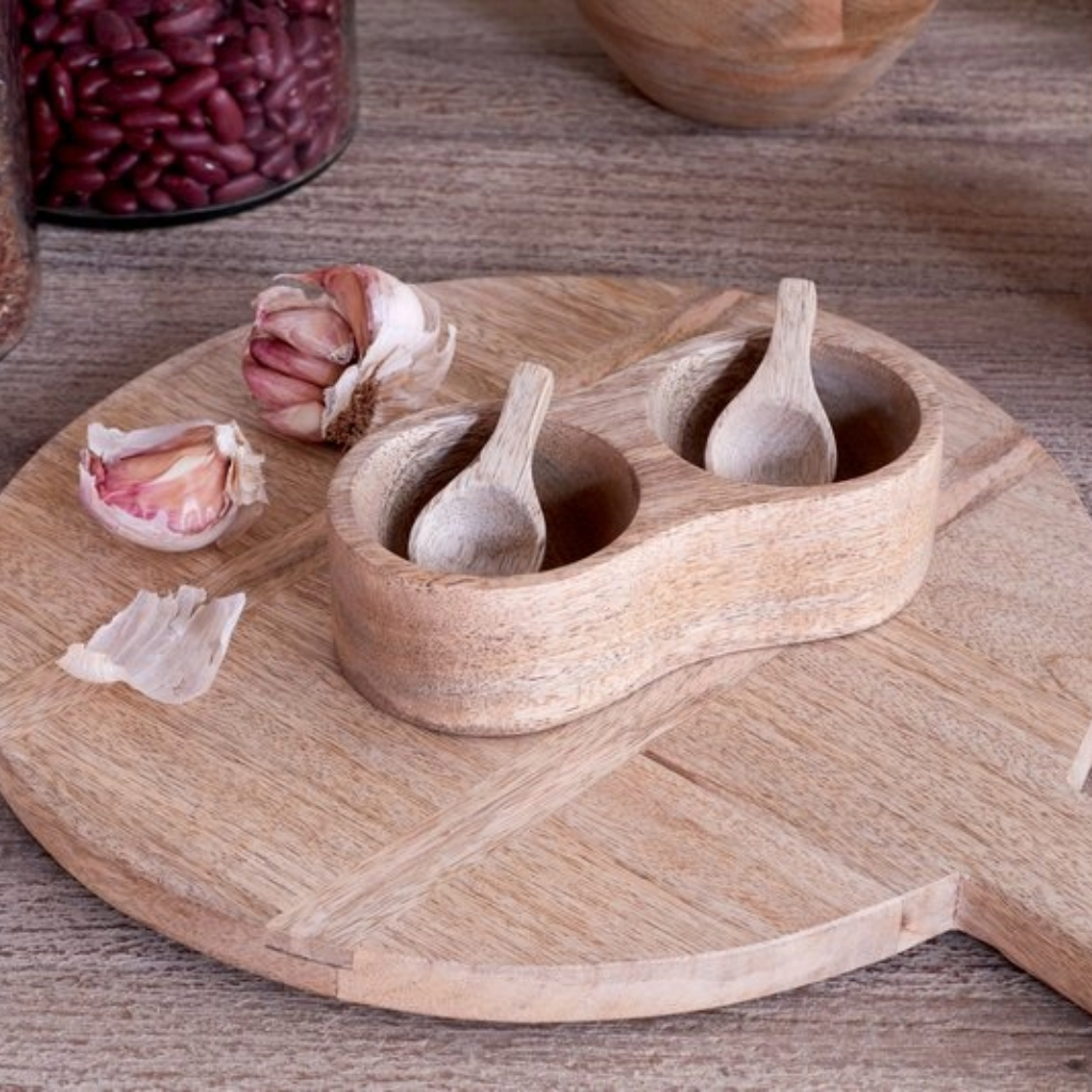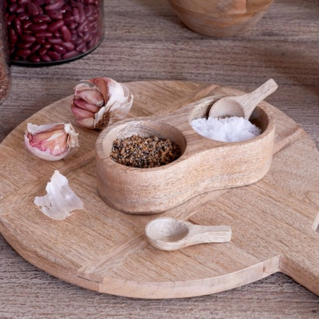 Gweinydd halen a phupur wedi ei gerfio o bren mango.