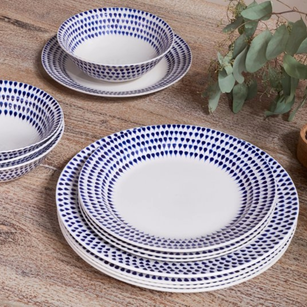 Mae’r platiau serameg trawiadol yma wedi eu gwneud â llaw yn Fietnam gan ddefnyddio technegau traddodiadol.