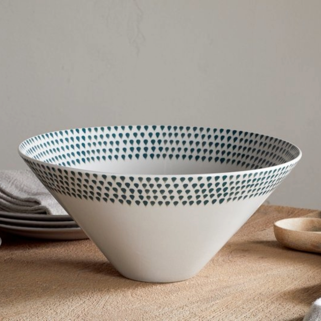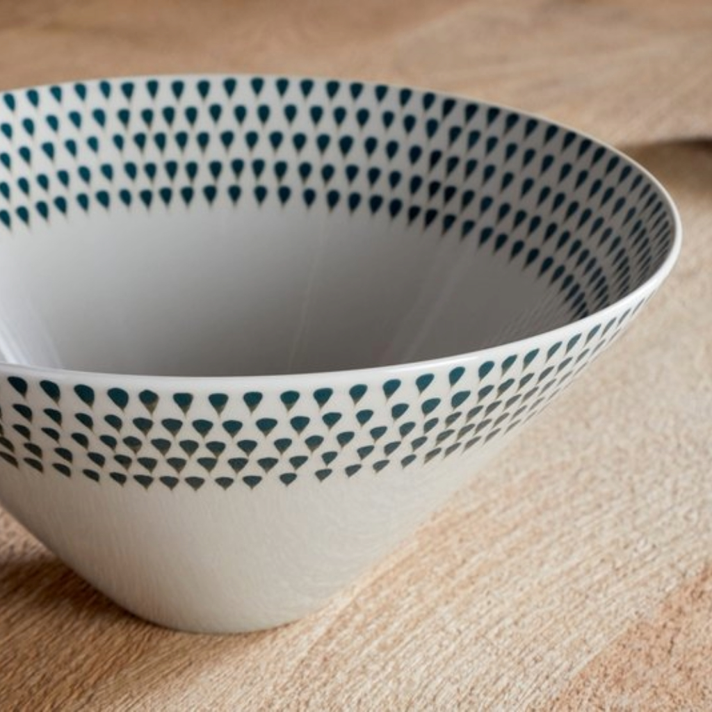 Powlen gweini gyda phatrwm gwyrdd syml.