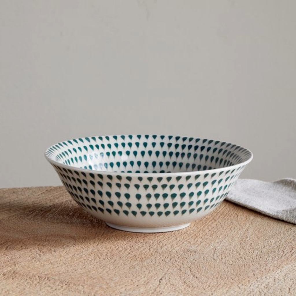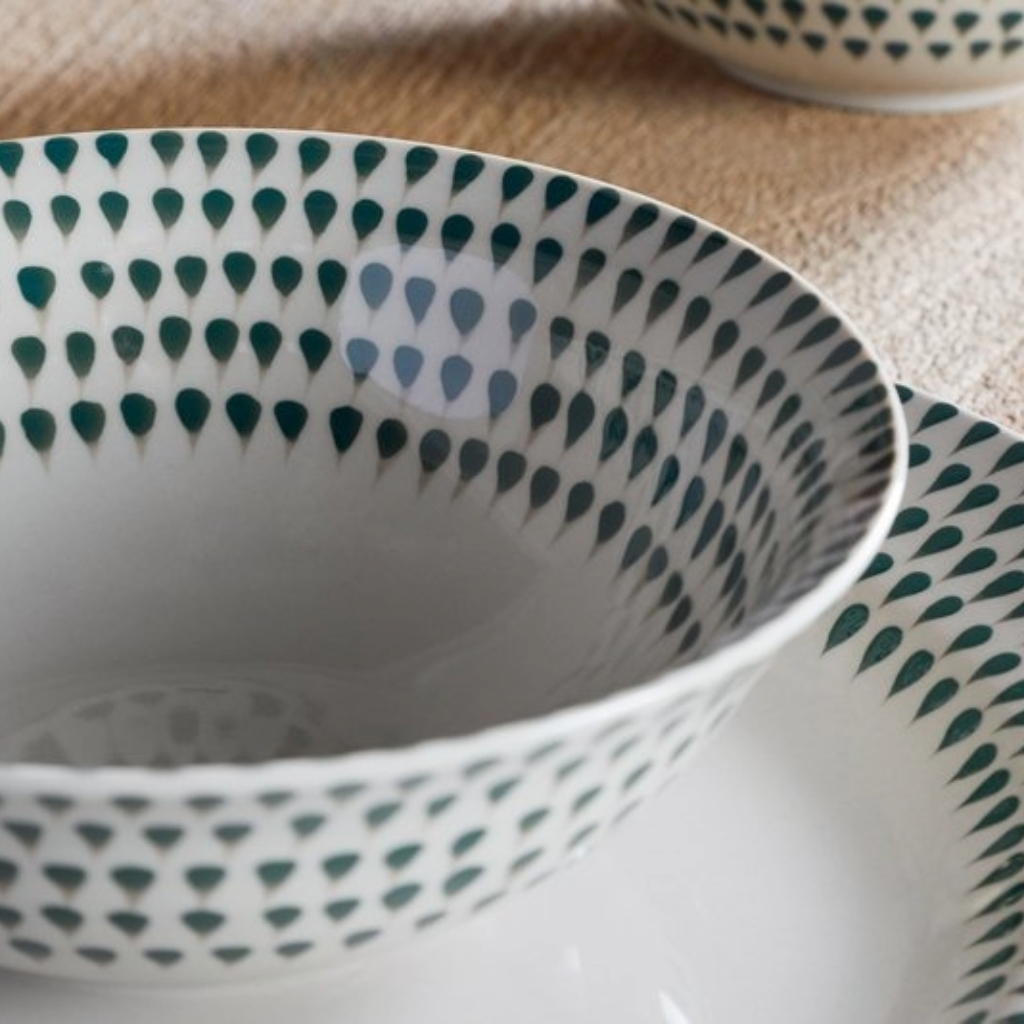 Powlen juniper gyda phatrwm syml gwyrdd.