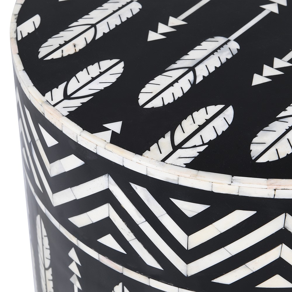Bwrdd bach trawiadol gyda mewnosodiad asgwrn byffalo a resin cywrain.