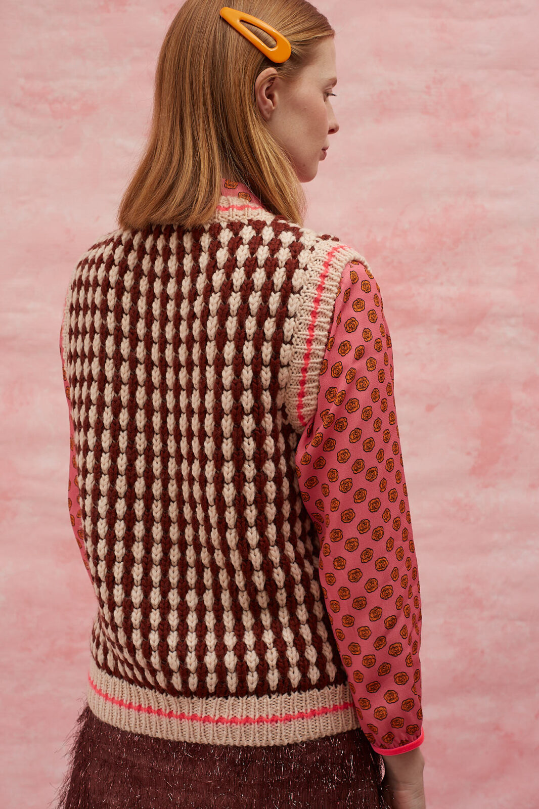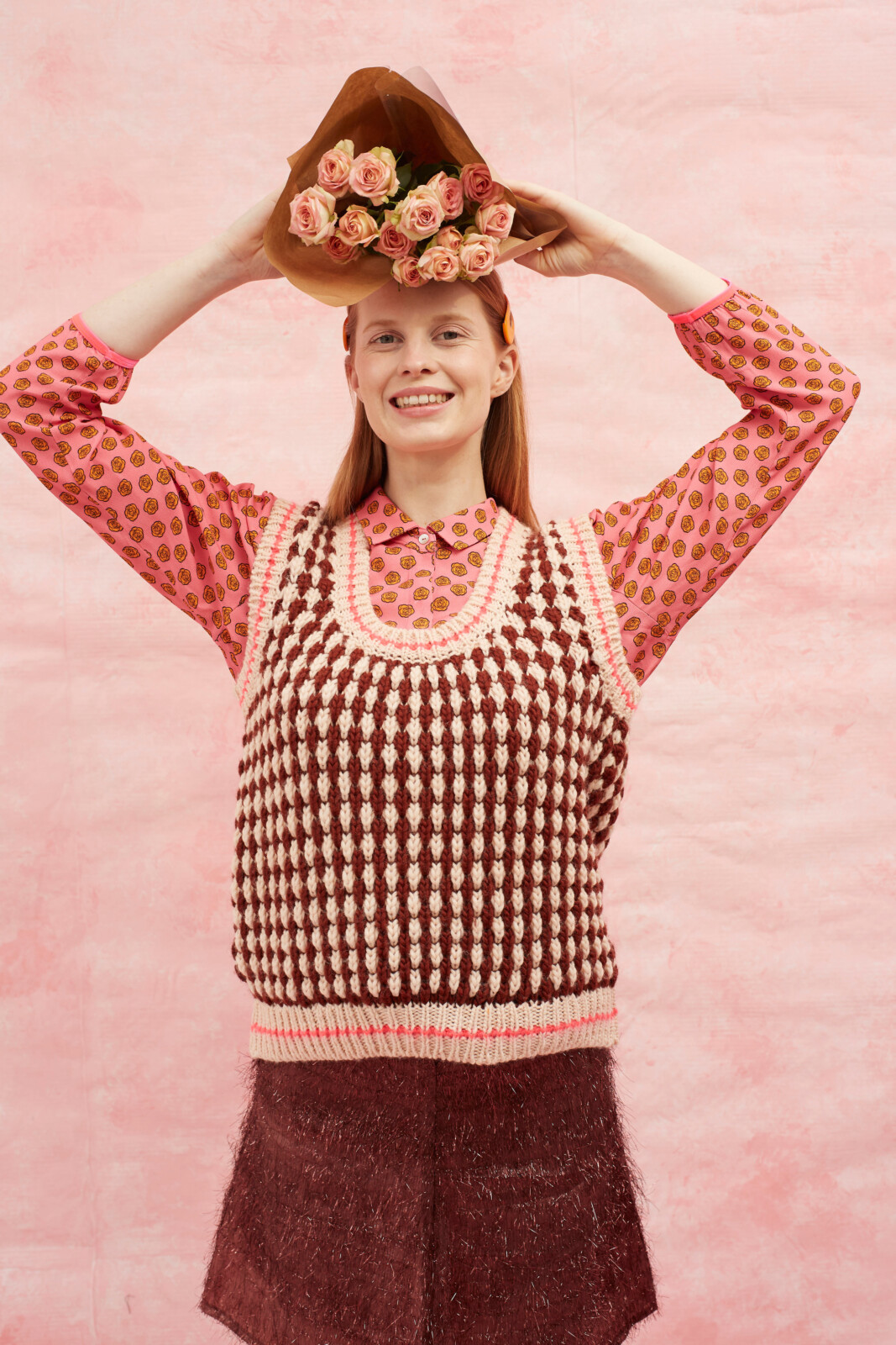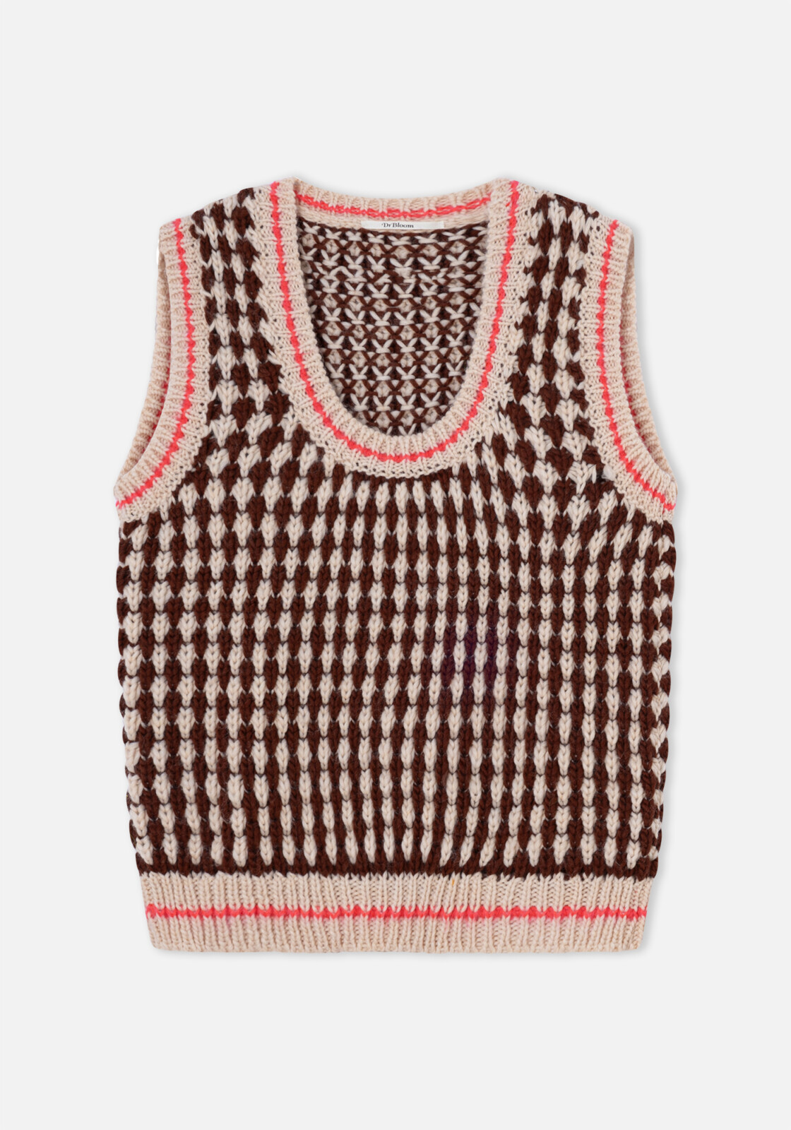 Fest lliw siocled wedi ei gwau. Defnydd: 60%PC, 14%PA, 10%PL, 8%WO, 8%VI