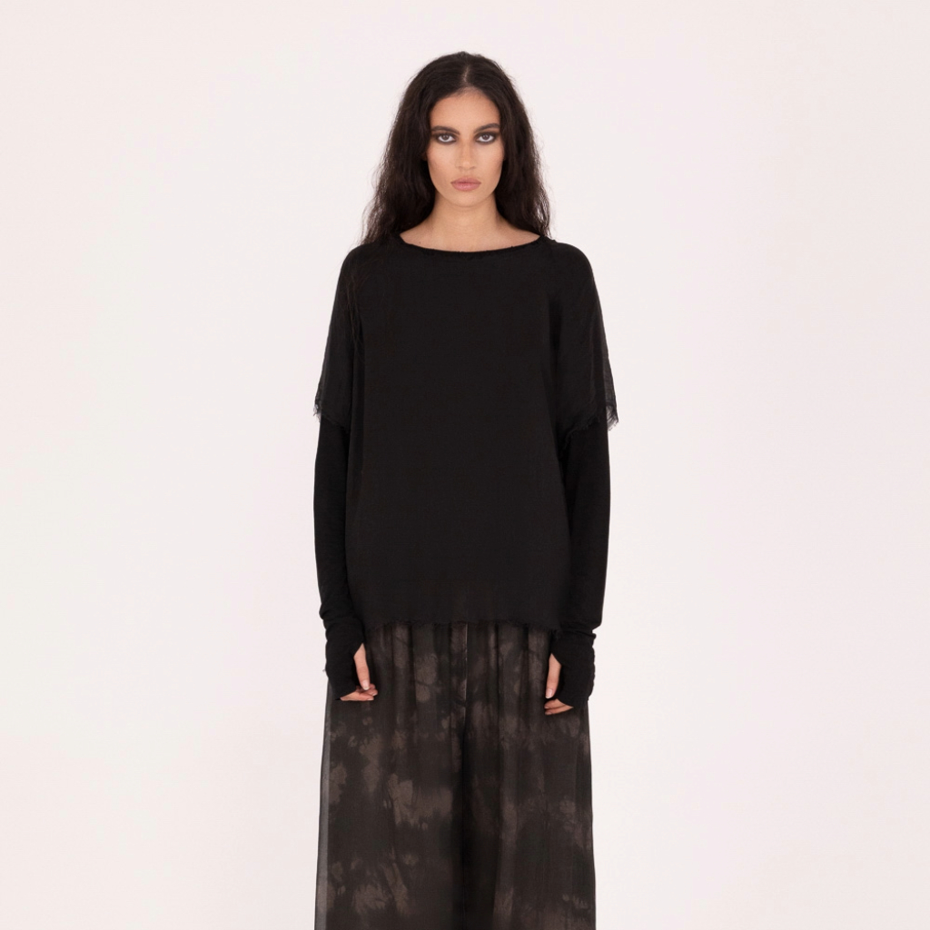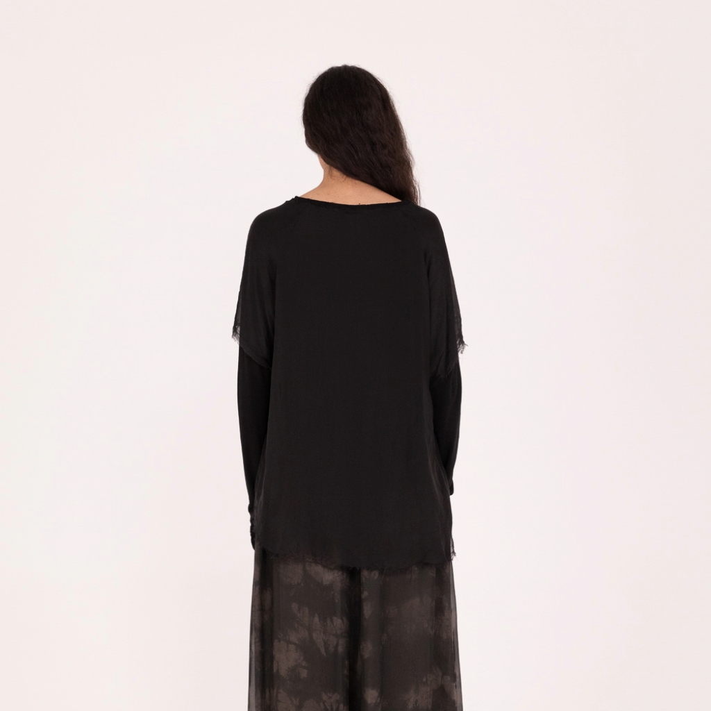Defnydd 70% Viscose, 30% Silk; jersey layer: 95% Cotton, 5% Elastane