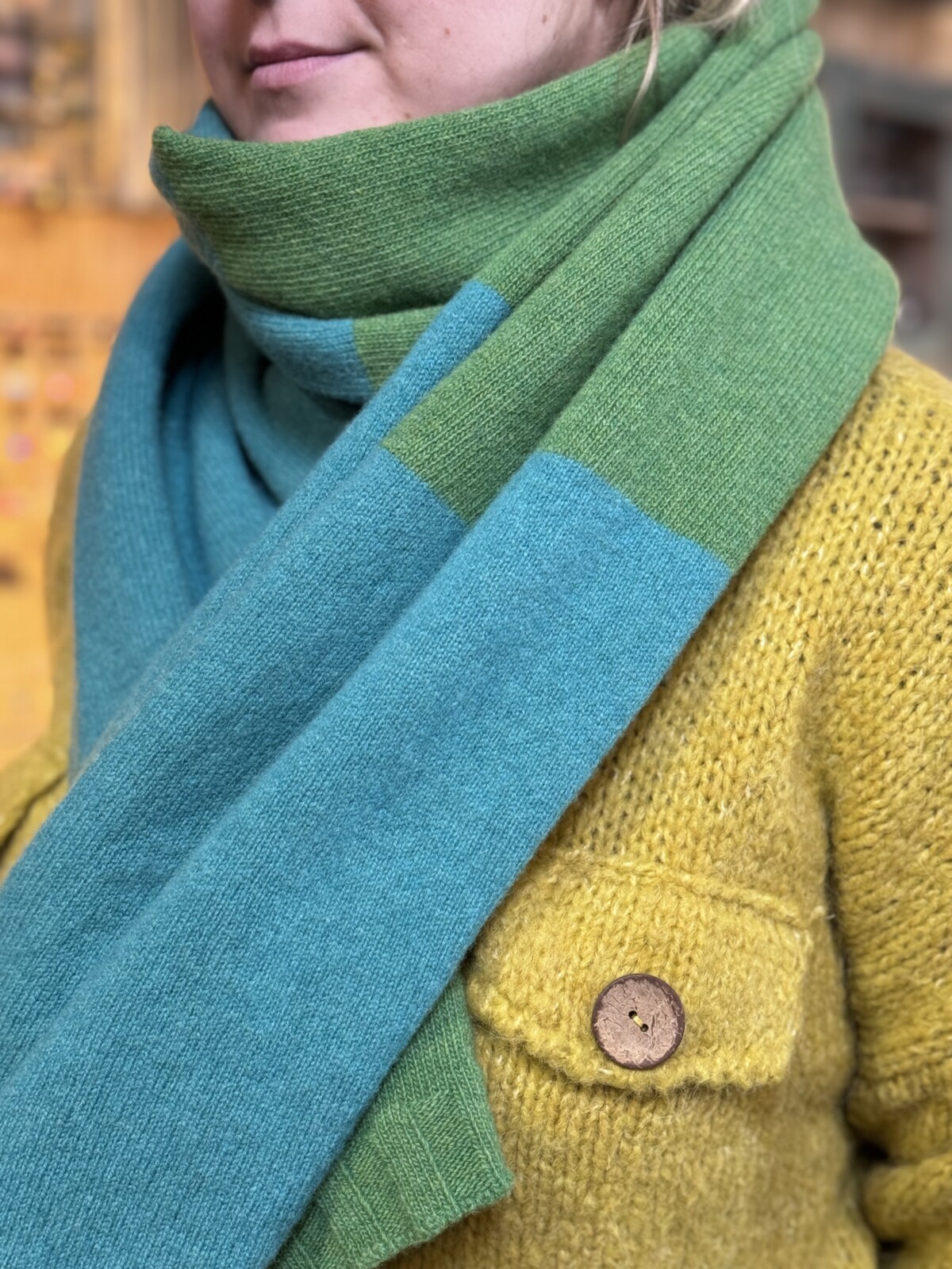 Sgarff mawr meddal mewn 100% gwlán merino.