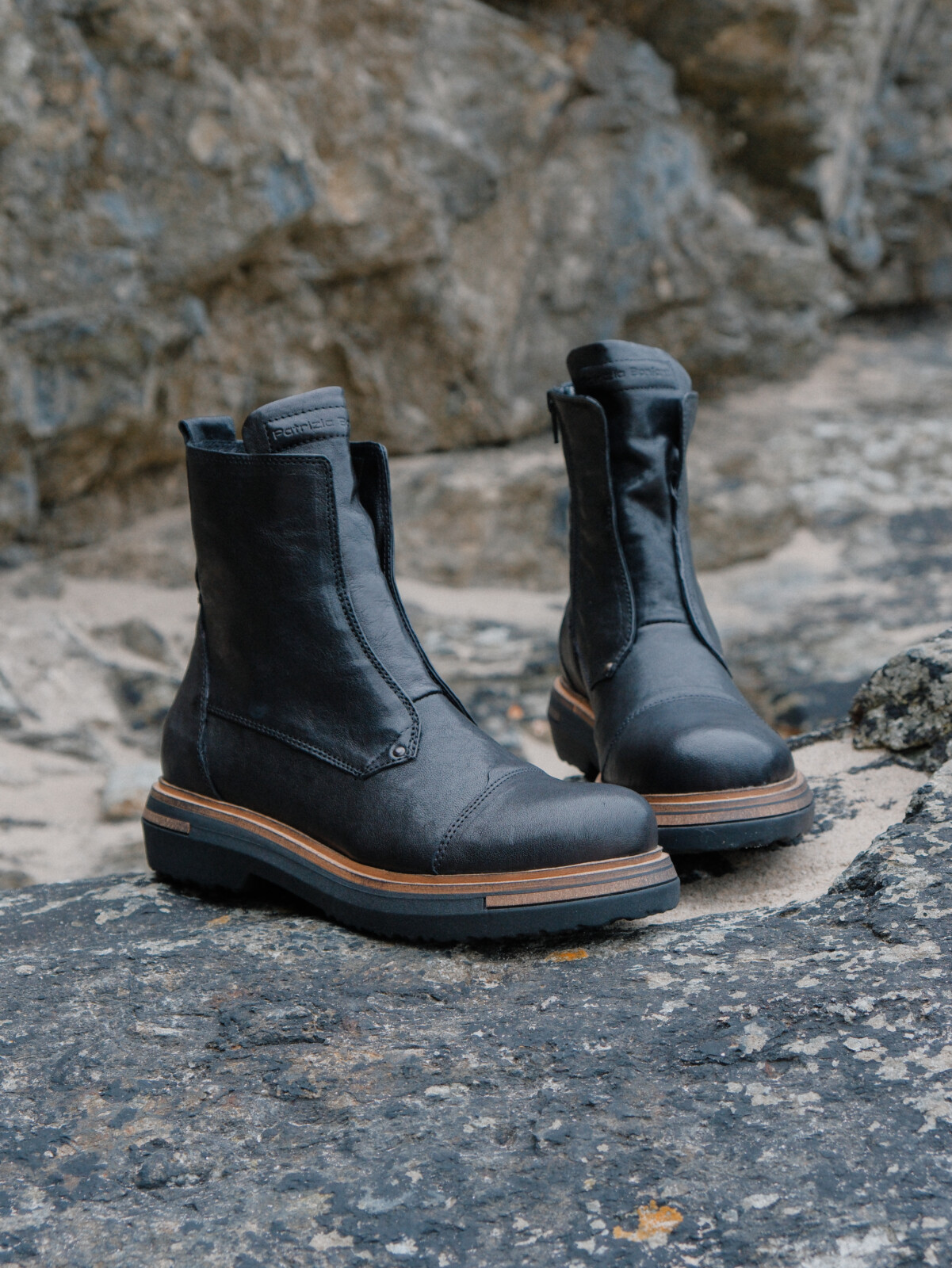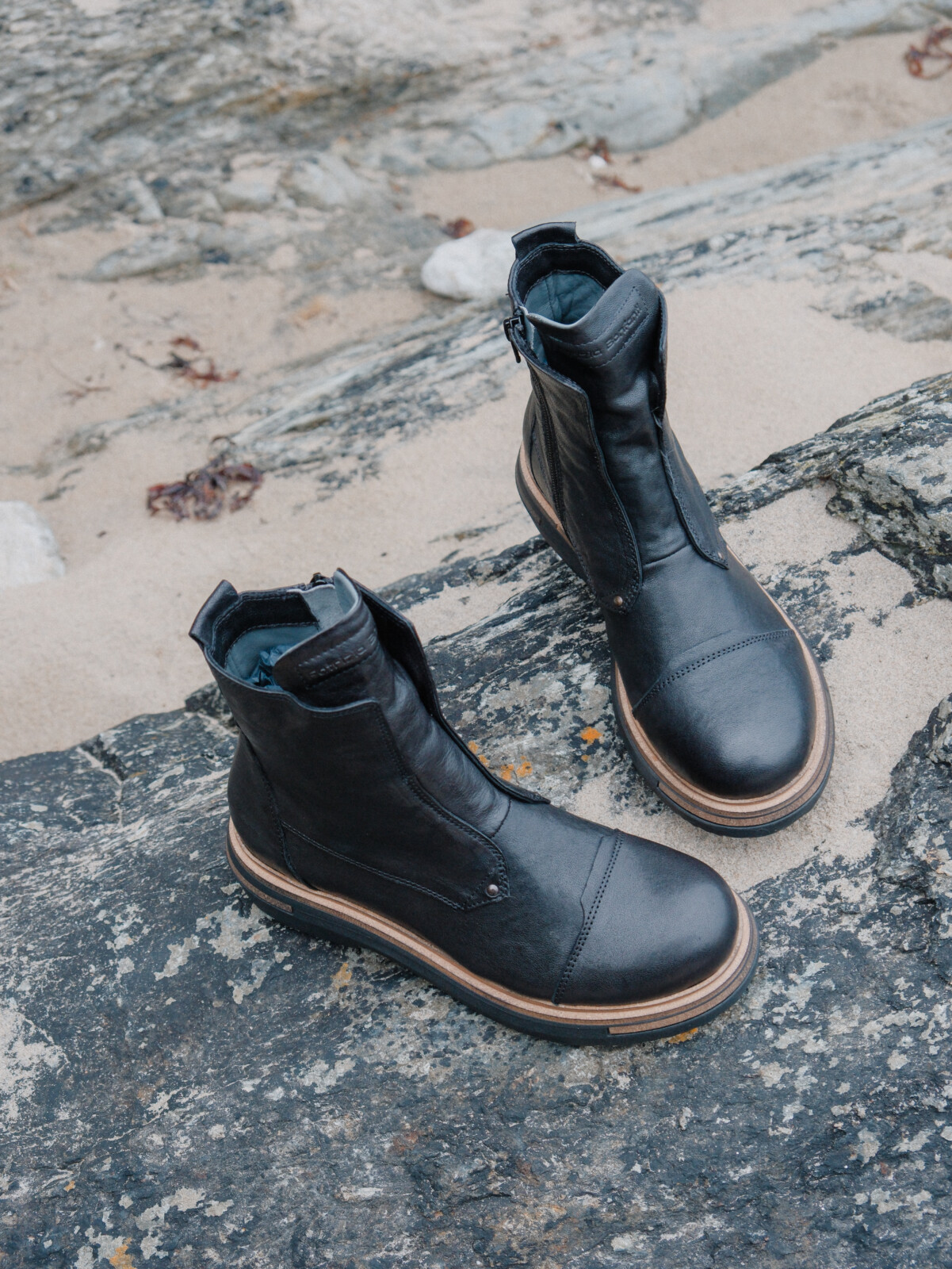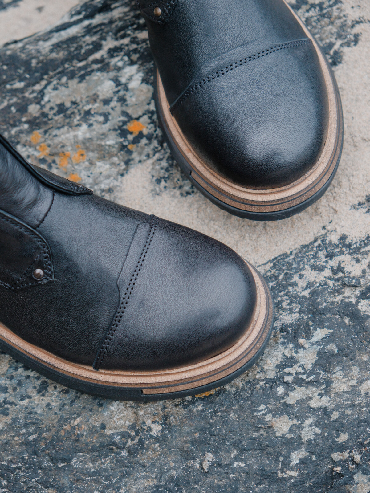 Esgidiau lledr du gan Patrizia Bonfanti. Steil syml a chyfforddus sydd byth yn mynd i ddyddio.