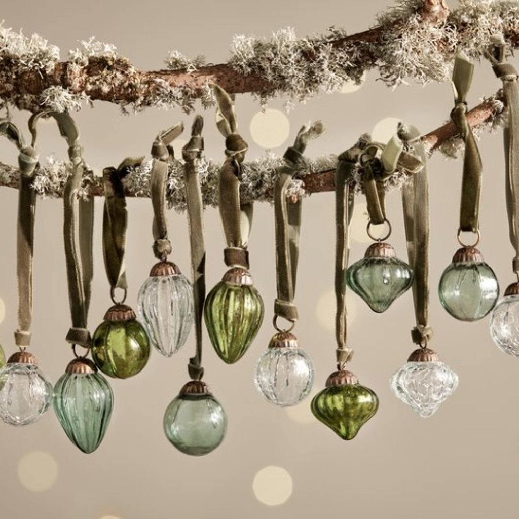 The Adisa bauble jar is full of beautiful glass baubles, making decorating your Christmas tree even easier and even more enjoyable. Each bauble is expertly crafted from hand blown recycled glass, as is the jar itself. The artisans mould the molten glass into a selection of delicate organic shapes. The baubles come in two striking shades of green as well as clear glass, and are hand etched with distinctive patterns. They also have a soft green cotton velvet tie. The jar has a subtle hammered finish and works as a stylish form of storage all year around.