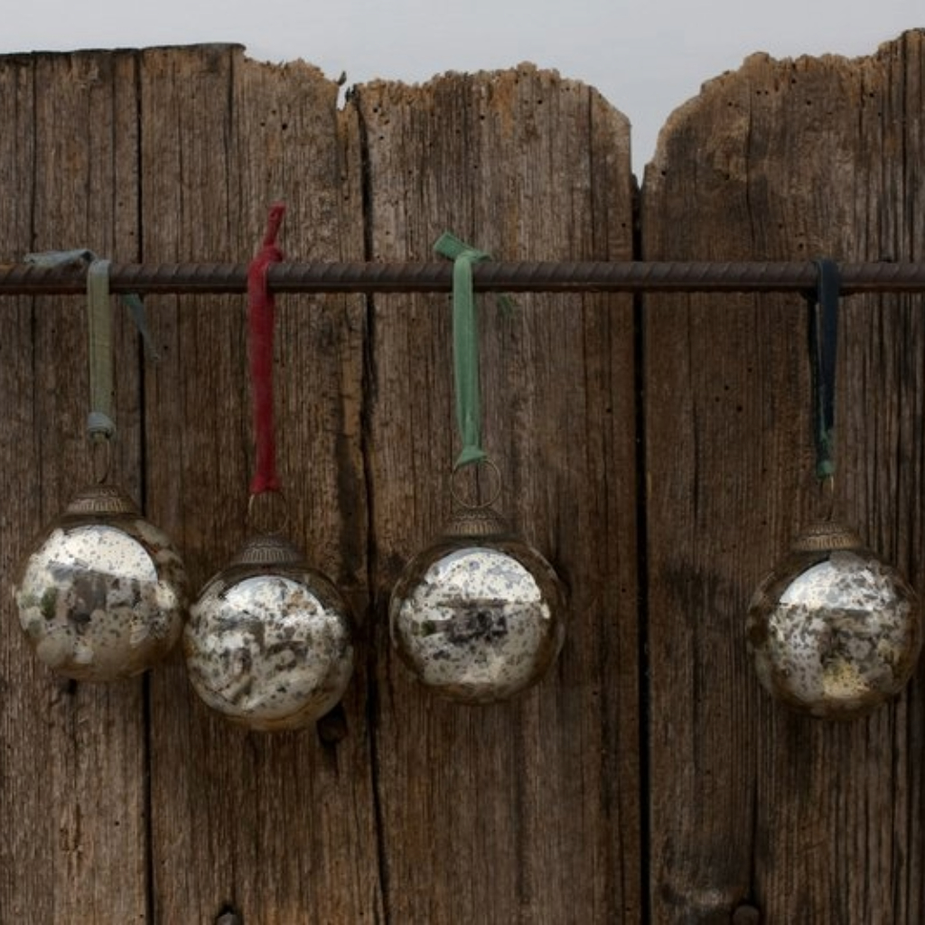 Decorate your tree with these antique glass Christmas baubles. Each glass silver bauble is handmade by skilled artisans and features an antique sari tie.