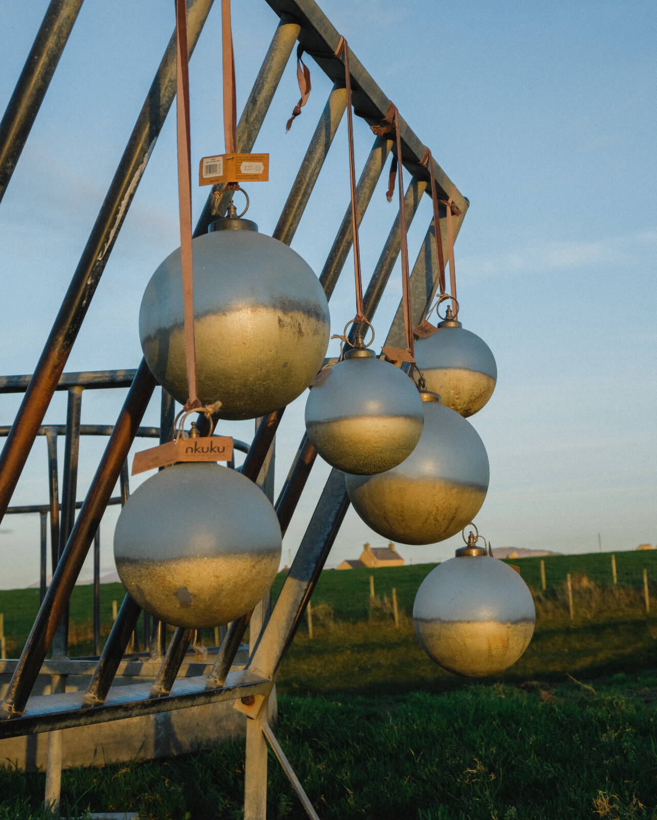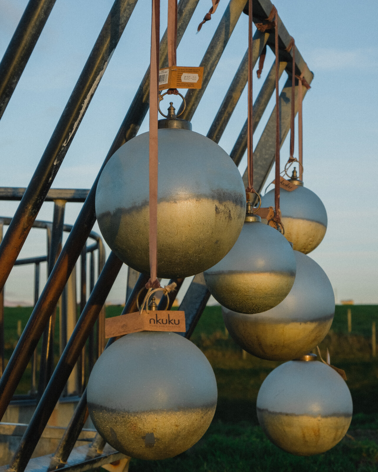 The Ngolo giant baubles are bold and beautiful. The smoky frosted glass looks like its been dipped in silver and the rustic antique finish guarantees these baubles will stand out. Their striking design means they would look equally as stylish suspended from your ceiling or strung together to form festive garlands. Made using recycled glass which is hand blown using traditional methods, a low-impact process which is better for the planet and which results in unique, timeless pieces.
