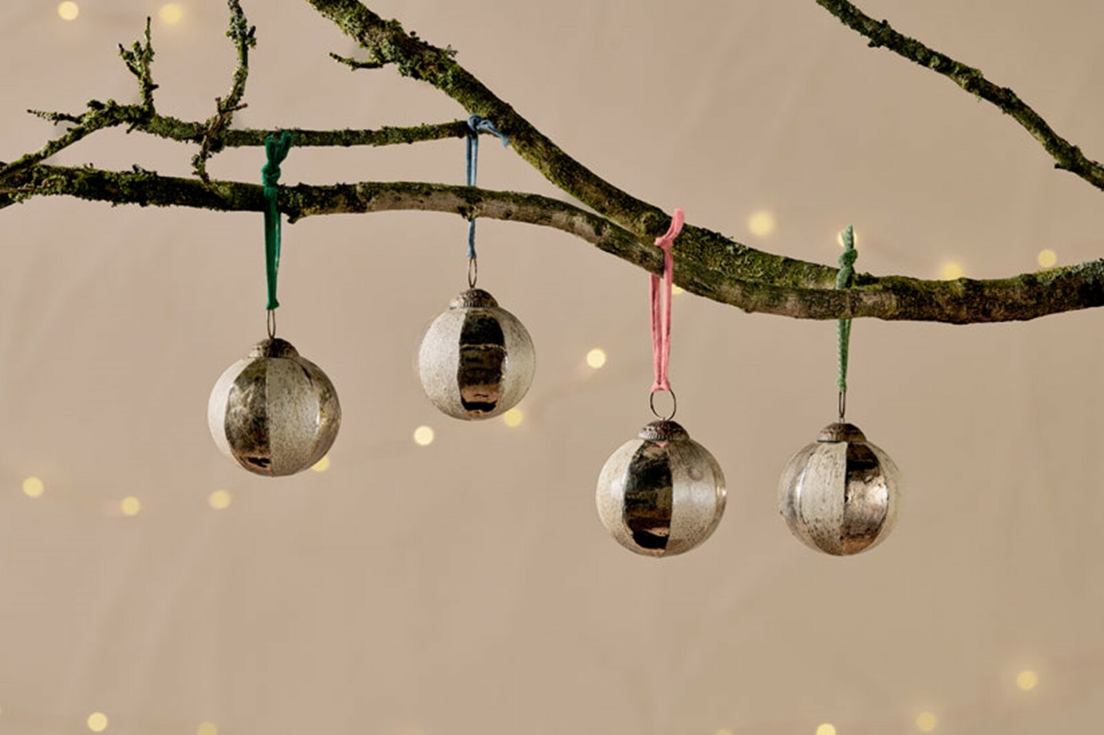 These striking gold Zuri Baubles lend an air of traditional sparkle to your festive scheme. Mouth blown and made from recycled glass, the contrasting gold panels are created by hand-etching alternate parts of the pattern for a unique and dazzling display, inspired by classic Christmases of a bygone age. Finished with an antique-style clasp and a colourful ribbon made from recycled saris.