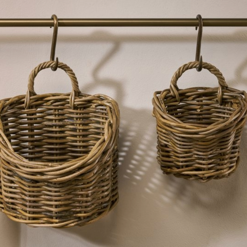 These handmade Zawar hanging baskets come in a set of 2 – small and large – and are beautifully designed, incorporating a curved drop-lip shape that is elegant and practical. Made from sustainable and natural rattan, each basket is uniquely characterful, adding both charm and utility to pantry or laundry room storage and organisation.