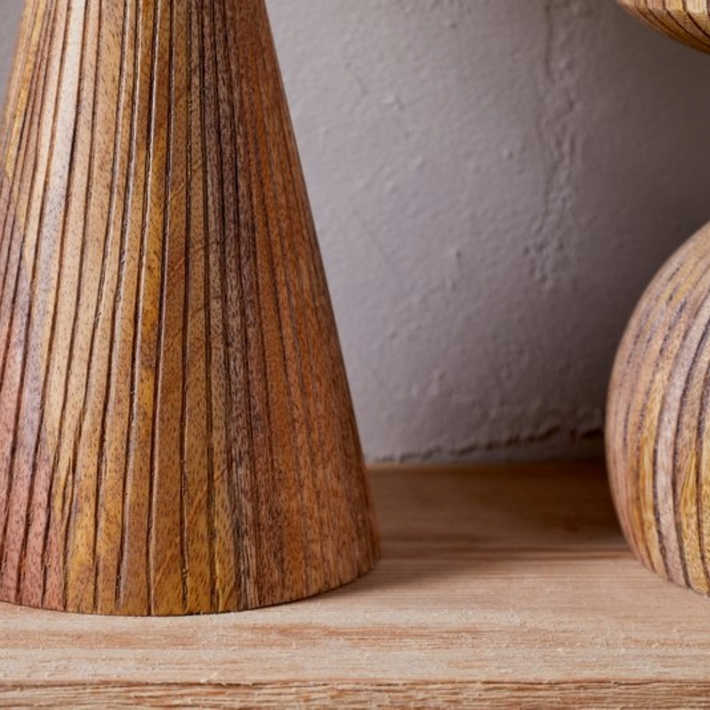 Hand-carved from sustainable mango wood, the Omari mango wood candle sticks provide a rustic feel and texture to any space. Their intricate hand-etched details highlight the natural beauty of the wood, while the soft, organic shape ensures they fit seamlessly on any surface. Ideal for pairing with soy blend pillar candles, these candle sticks make a stylish addition to your home, and a great gift. Available in two sizes.