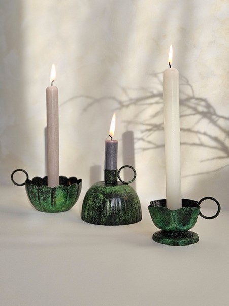 Ethically handmade in northern India from 100% sheet iron, the Petticoat Candle Holder is expertly crafted using age-old traditional metalsmithing techniques. Its rustic finish and distinctive patina make each piece unique. The elegant petticoat-shaped design adds a timeless charm to any space, creating a warm and inviting glow.