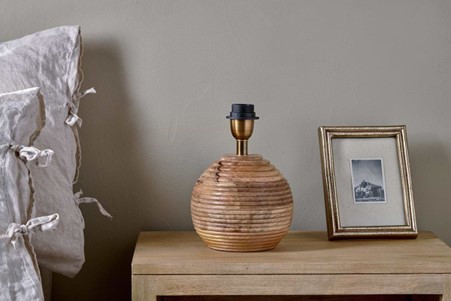 Made from sustainable mango wood and hand crafted in India, the relaxed aesthetic of the Drisana lamp makes it a perfect addition to a bedroom setting. The beautiful hand carved grooves and the warm tones of the wood are an effortless way to bring natural texture to an interior scheme. This lamp is made from multiple offcuts of mango wood, creating a beautiful pattern with subtle variations from the different grains, while reducing waste from offcuts at the same time.
