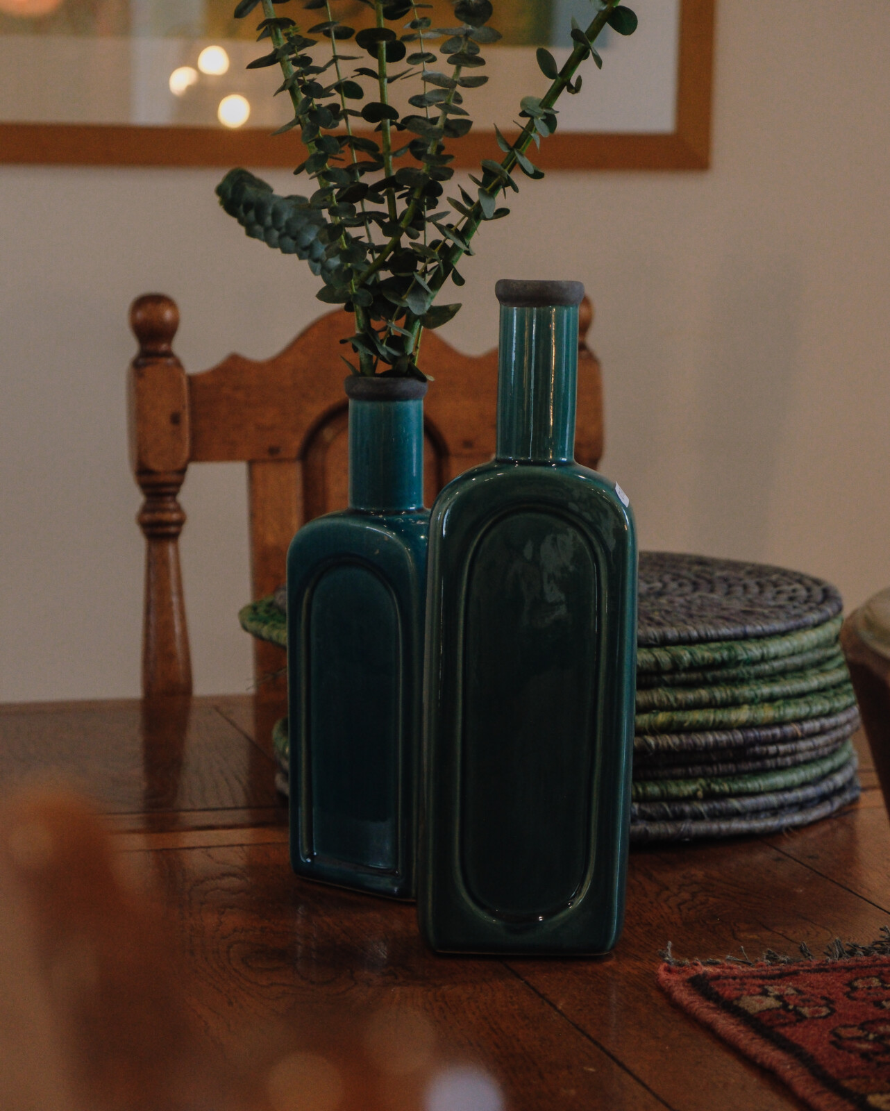 Elevate your home décor with this stunning turquoise stoneware vase. Featuring a sleek, rectangular shape with soft rounded edges and a smooth, glossy finish, this vase adds a touch of modern elegance to any space.