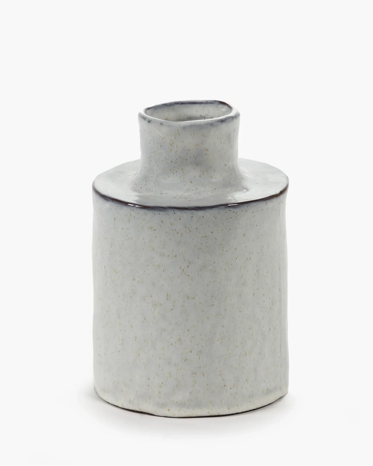 The off-white cylindrical Héléna vases have the irregular shape that you’d expect to see in a handcrafted product. They are uniquely decorative, both with and without flowers.