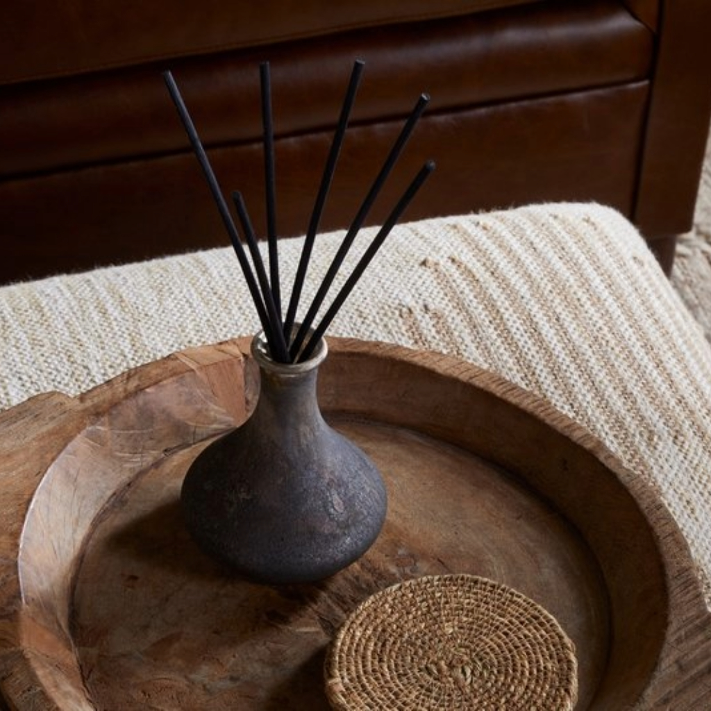 This reed diffuser is made in the UK by a family-run business, using a bespoke fragrance crafted exclusively for this collection. Woody notes of cedarwood, aromatic smoke, and honeyed fig evoke the warmth and comfort of a crackling fireside. The vessel features a beautifully textured finish and is designed to be reused as a small vase once the fragrance has dispersed.