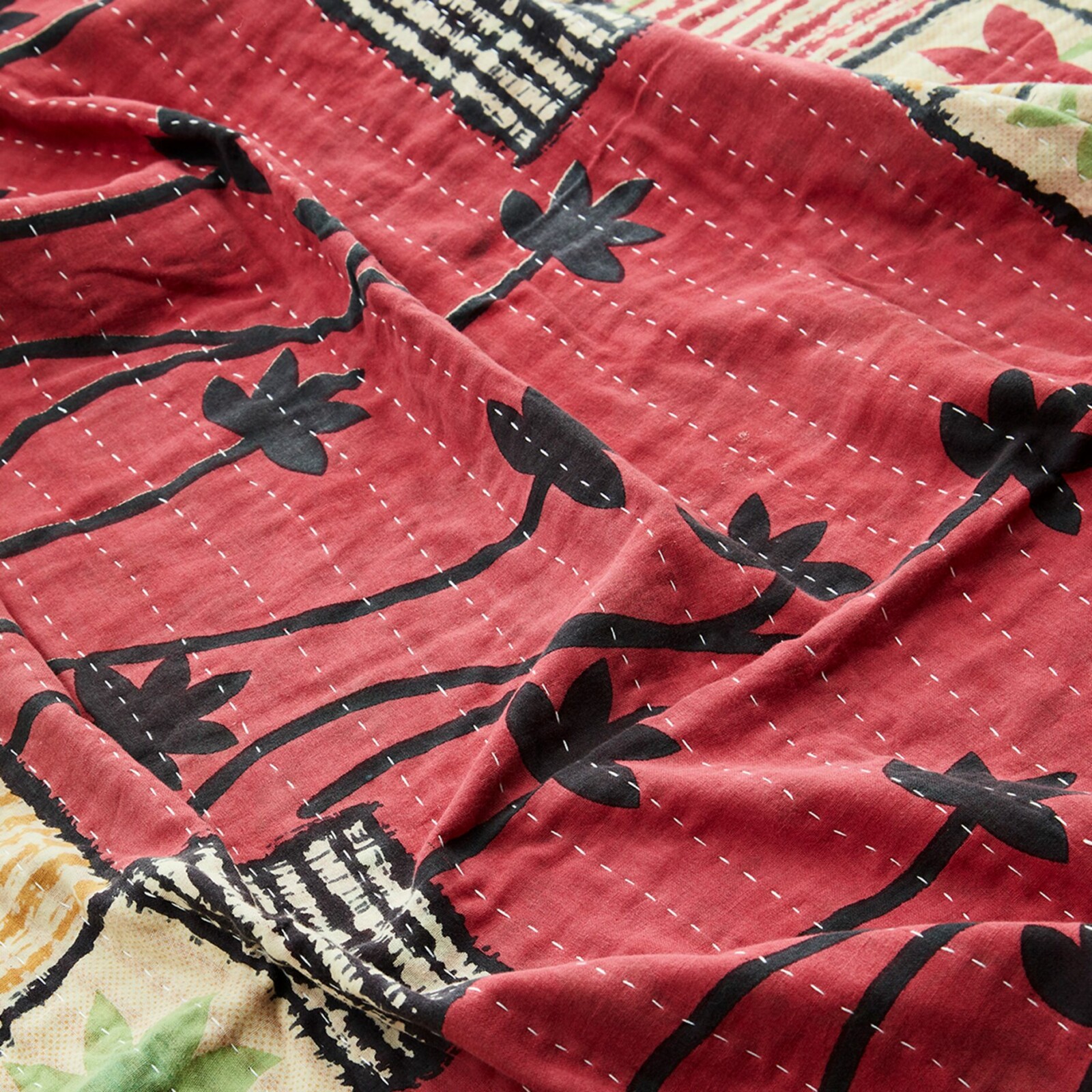 Each throw consists of several layers of fabric, which are put together using the traditional kantha technique, which is characterized by hand-stitched lines.