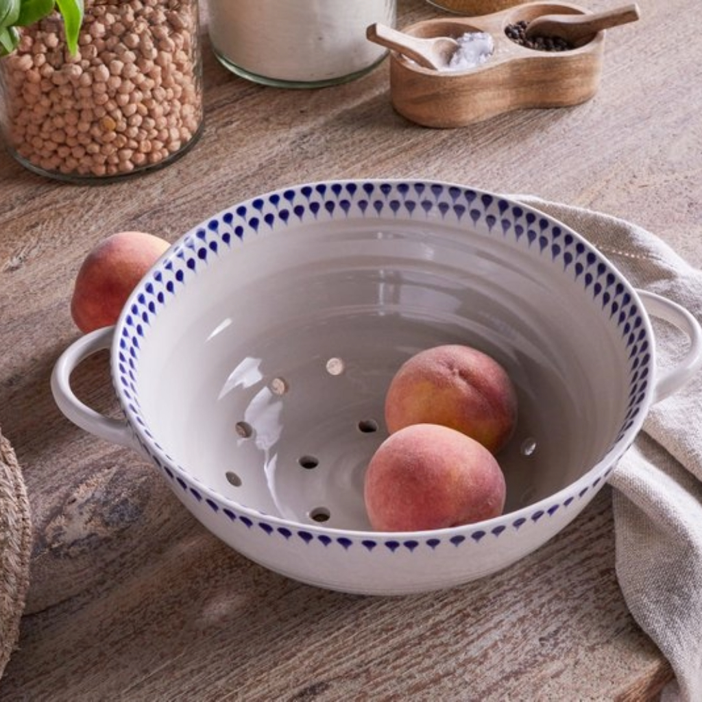 Expertly handcrafted and painted, we love this colander for both rinsing and serving fresh fruits and vegetables in a rustic kitchen-to-table way.