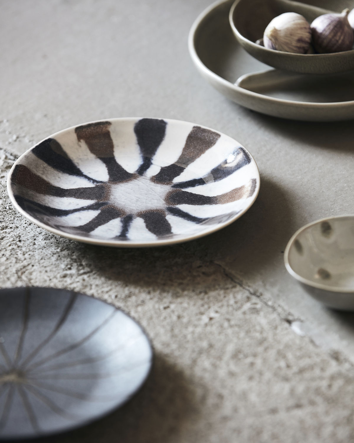 With narrow stripes on a matte glaze it will definitely add a rustic touch to your table.
