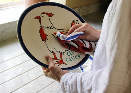 Add a touch of rustic charm to your dining experience with this exquisite hand-painted ceramic plate. Hand painted in Italy, this plate features a delightful chicken design that brings a countryside feel to your table.