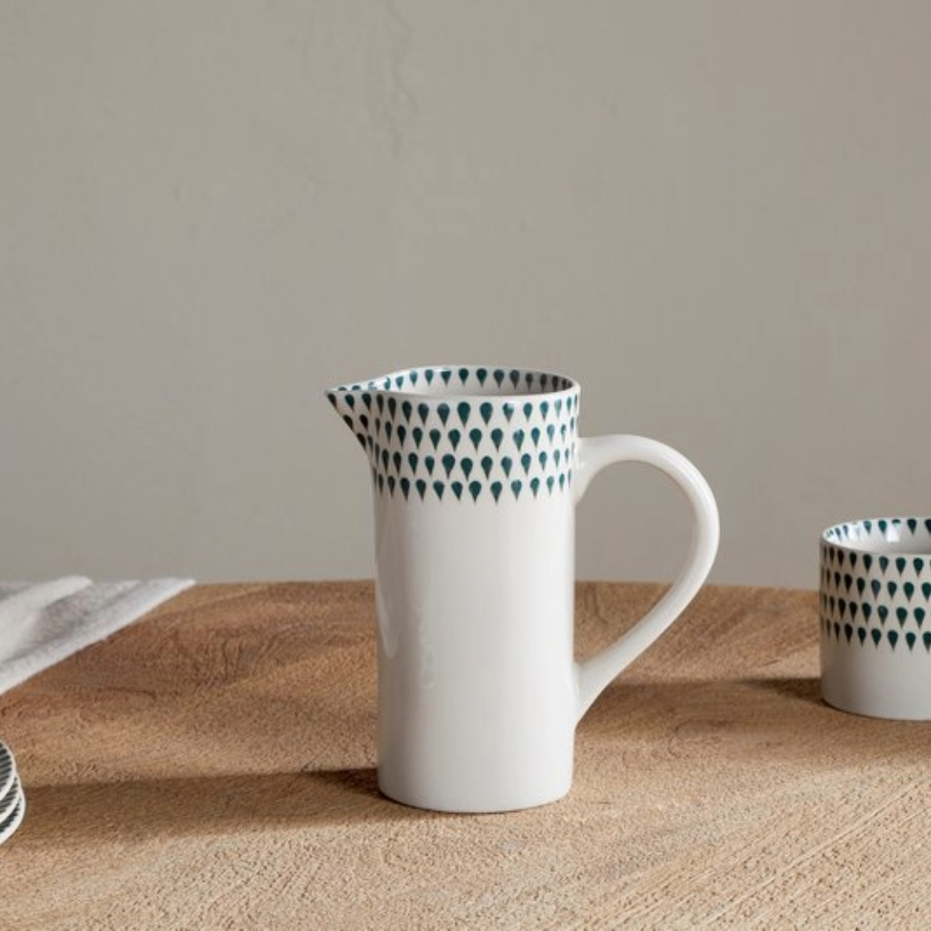 A smaller juniper drop jug with a tall, straight shape and rich green design. Perfect for serving milk or cream, it combines everyday practicality with simple, contemporary style.