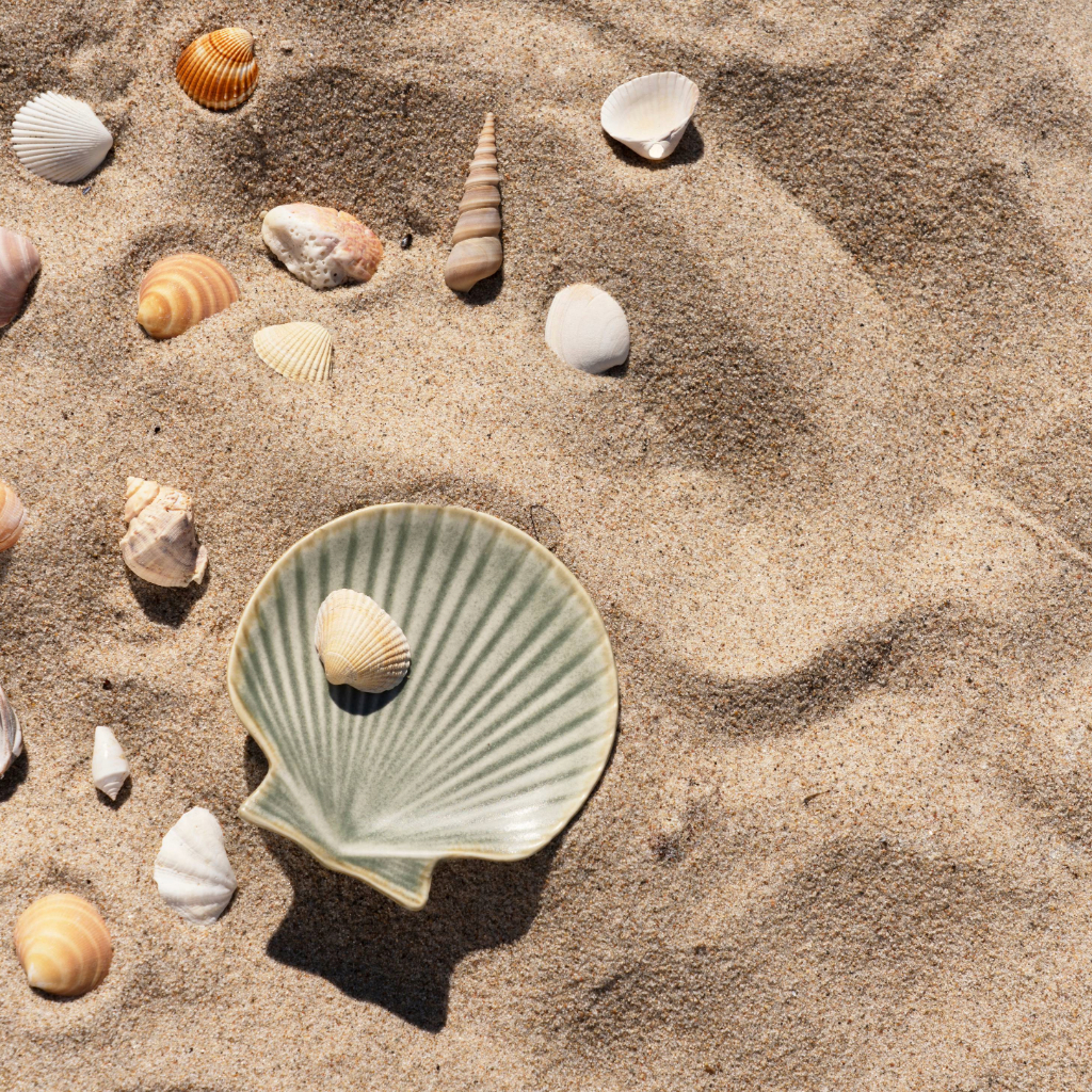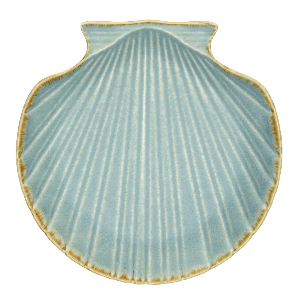 A stoneware shell-shaped tray in light blue tones, bringing calm, seaside-inspired charm to your table. Perfect for serving snacks, dips, or holding small items like jewellery, its textured, organic design adds a relaxed, elegant touch to everyday meals and gatherings.
