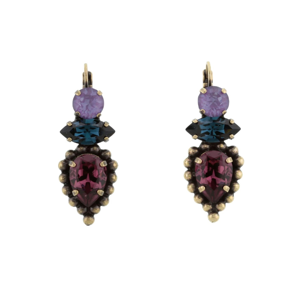 Elegant bronze-plated earrings featuring three sparkling stones and a lever arch closure for a secure, stylish fit. Perfect for adding a touch of glamour to any outfit.