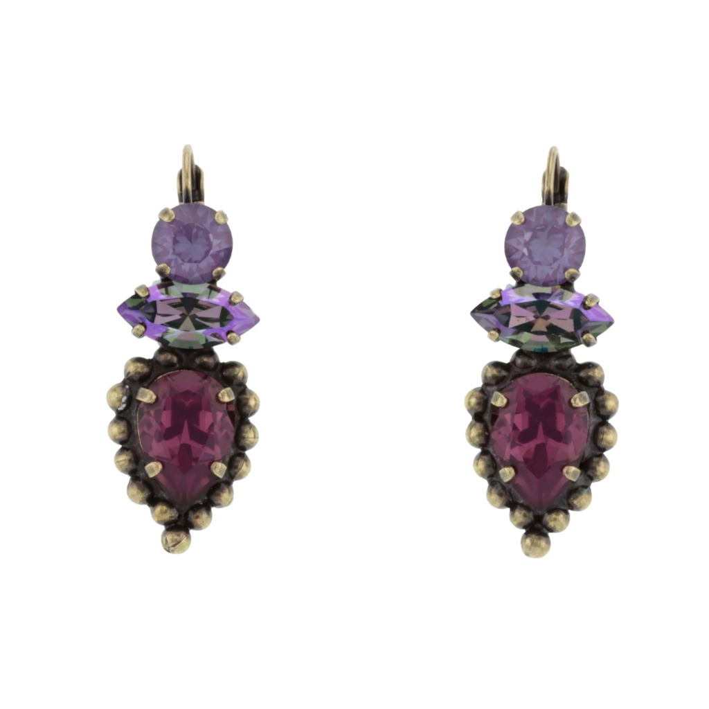 Elegant bronze-plated earrings featuring three sparkling stones and a lever arch closure for a secure, stylish fit. Perfect for adding a touch of glamour to any outfit.