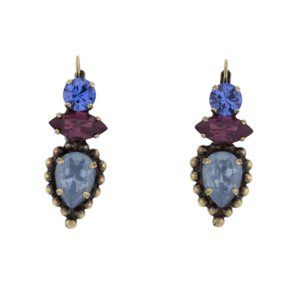 Elegant bronze-plated earrings featuring three sparkling stones and a lever arch closure for a secure, stylish fit. Perfect for adding a touch of glamour to any outfit.