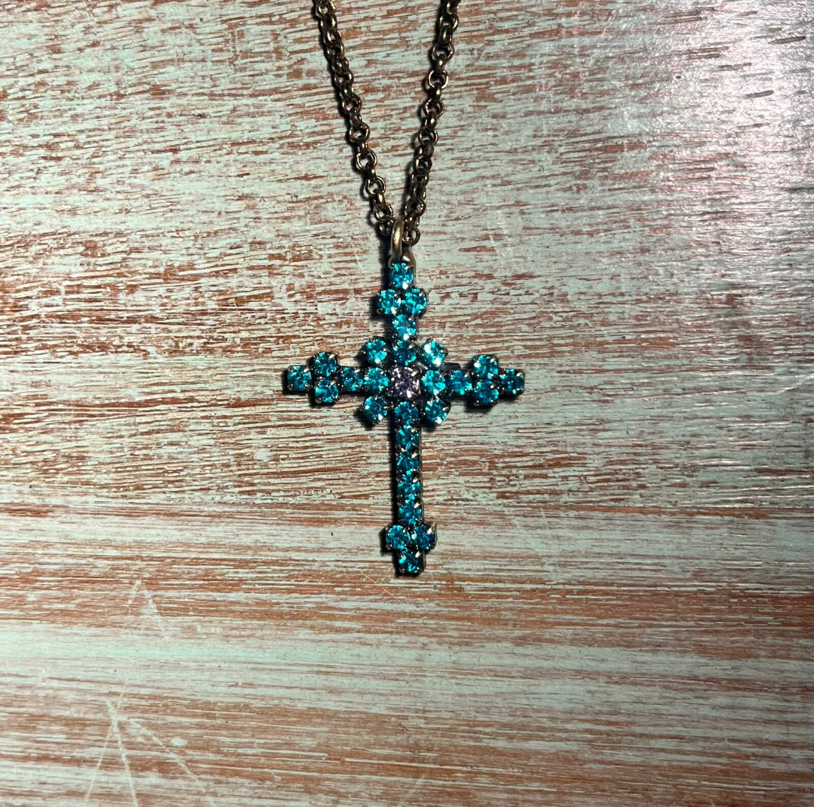 On a bronze plated chain with lobster clasp. Length: approx 42 cm.