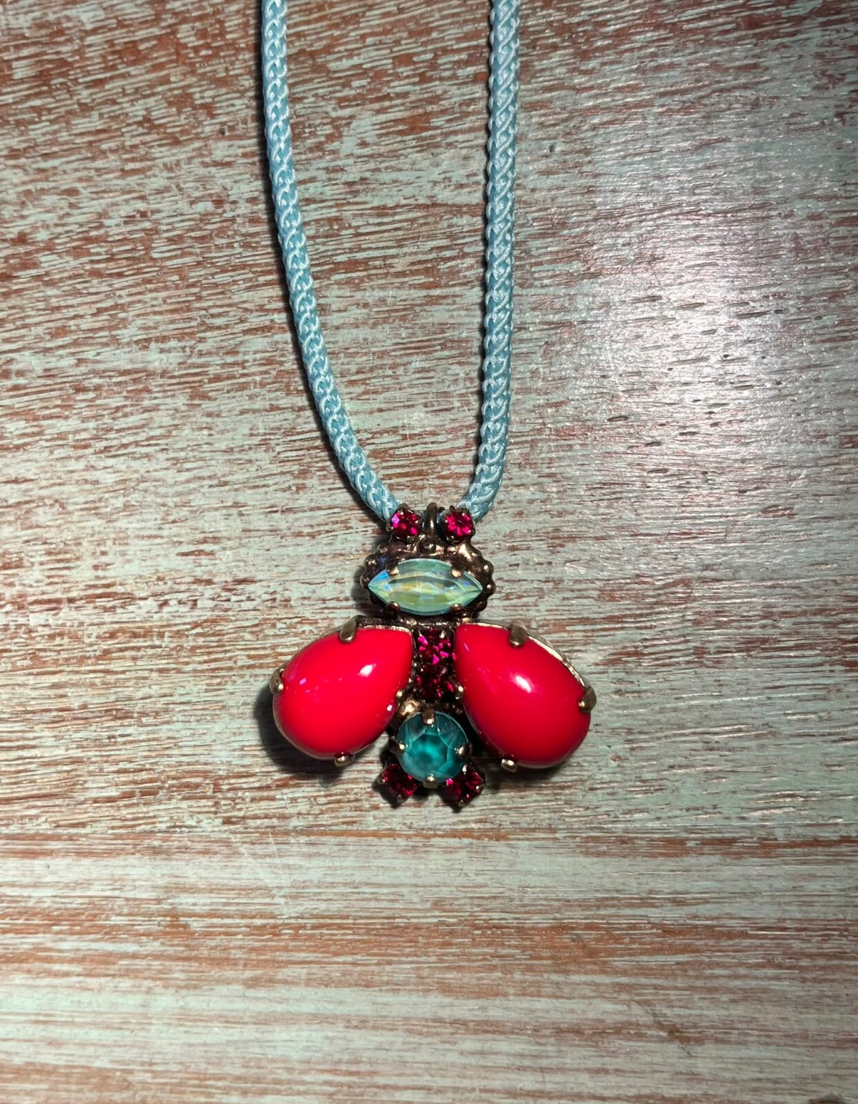On pale teal cord.