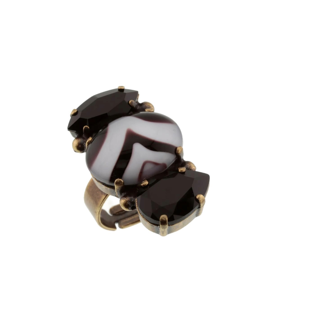 An adjustable brass statement ring featuring three stones made from Strass Swarovski and glass. Bold, stylish, and perfect for any occasion. Dimensions Approximately 2 x 3 cm
