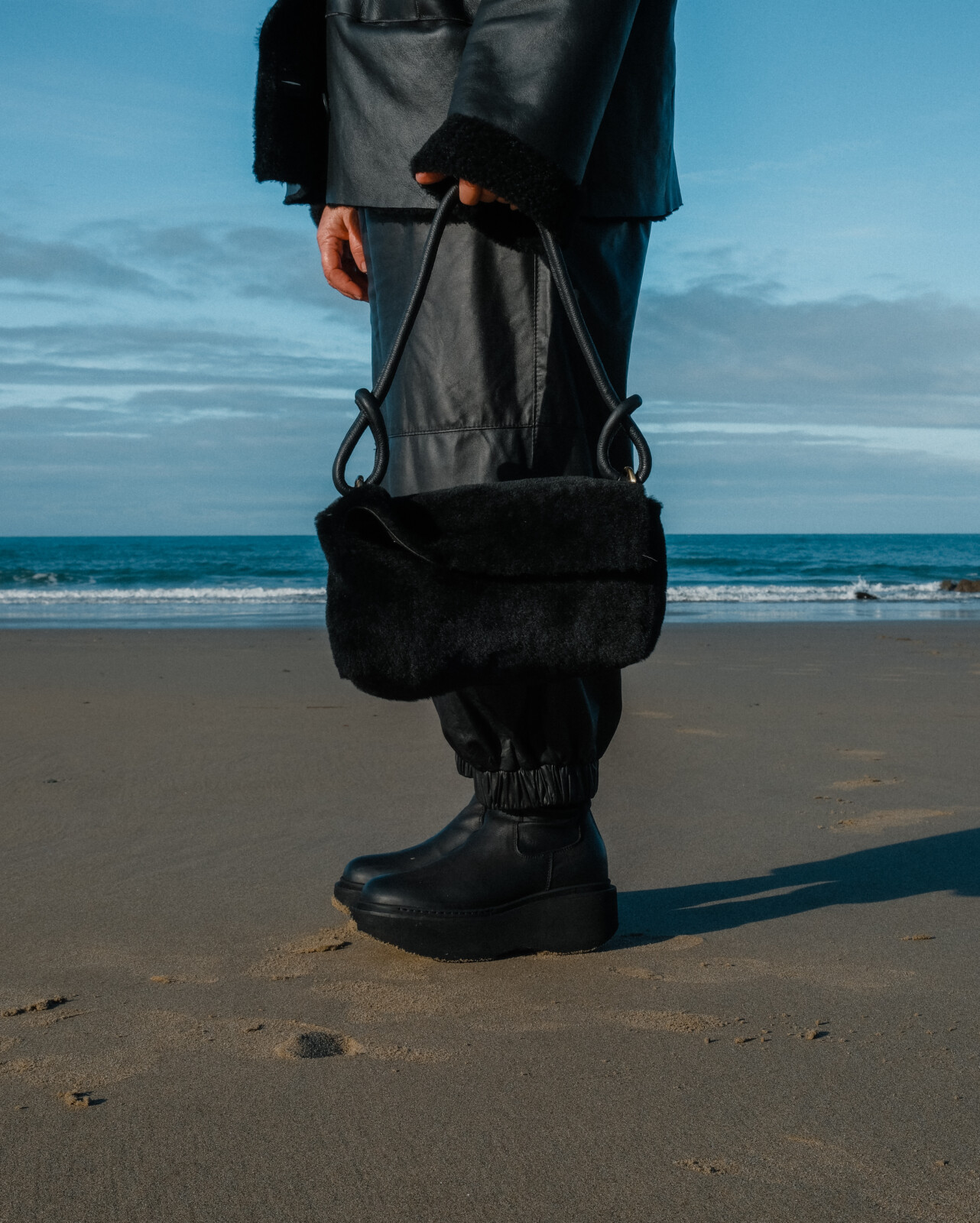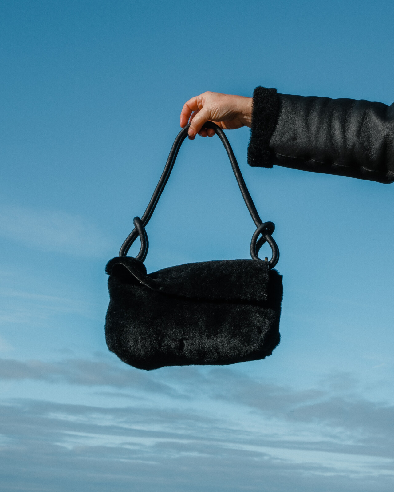 Black Sheepskin Shoulder Bag