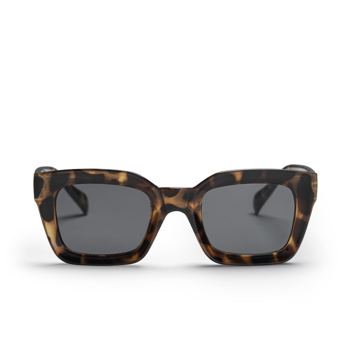 Anna sunglasses with black tinted lens and a leopard print frame made from 100% recycled plastic.