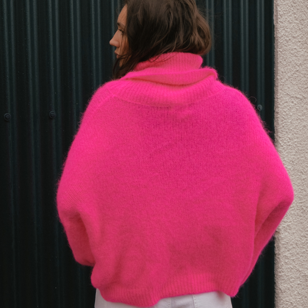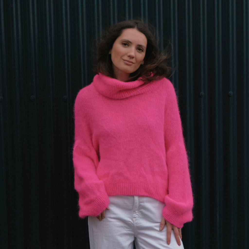 A soft alpaca-blend pullover with a cozy rollneck, cropped fit, and ribbed details. Lightweight, warm, and easy to layer for everyday style.