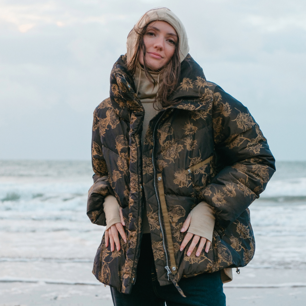 Composition 61% Polyamide, 39% Polyester | Lining 100% Polyester | Filling 90% Recycled goose down, 10% Recycled goose feathers