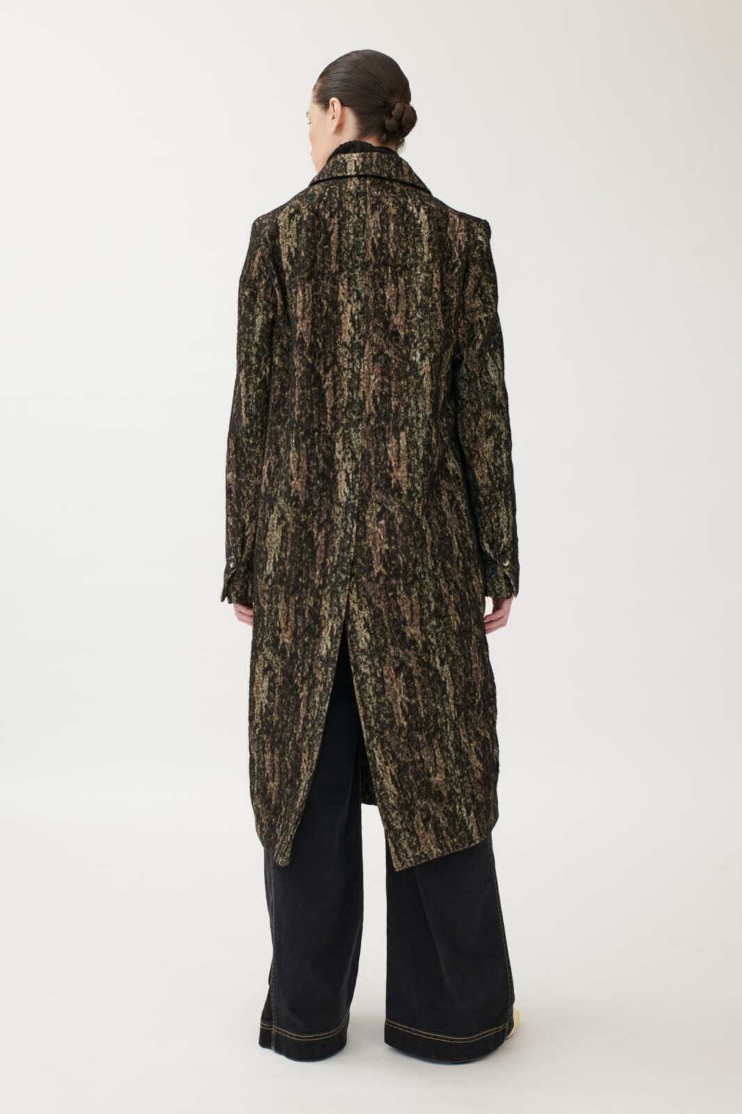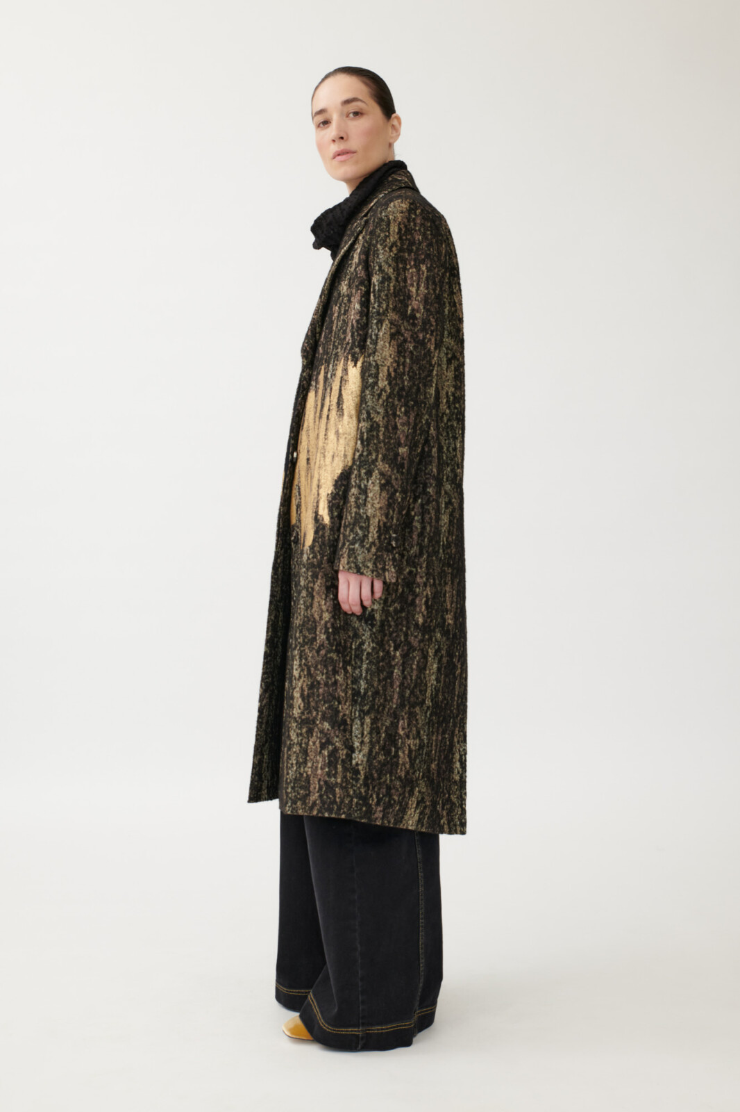 Classic coat in textured jacquard, hand-painted and limited edition.