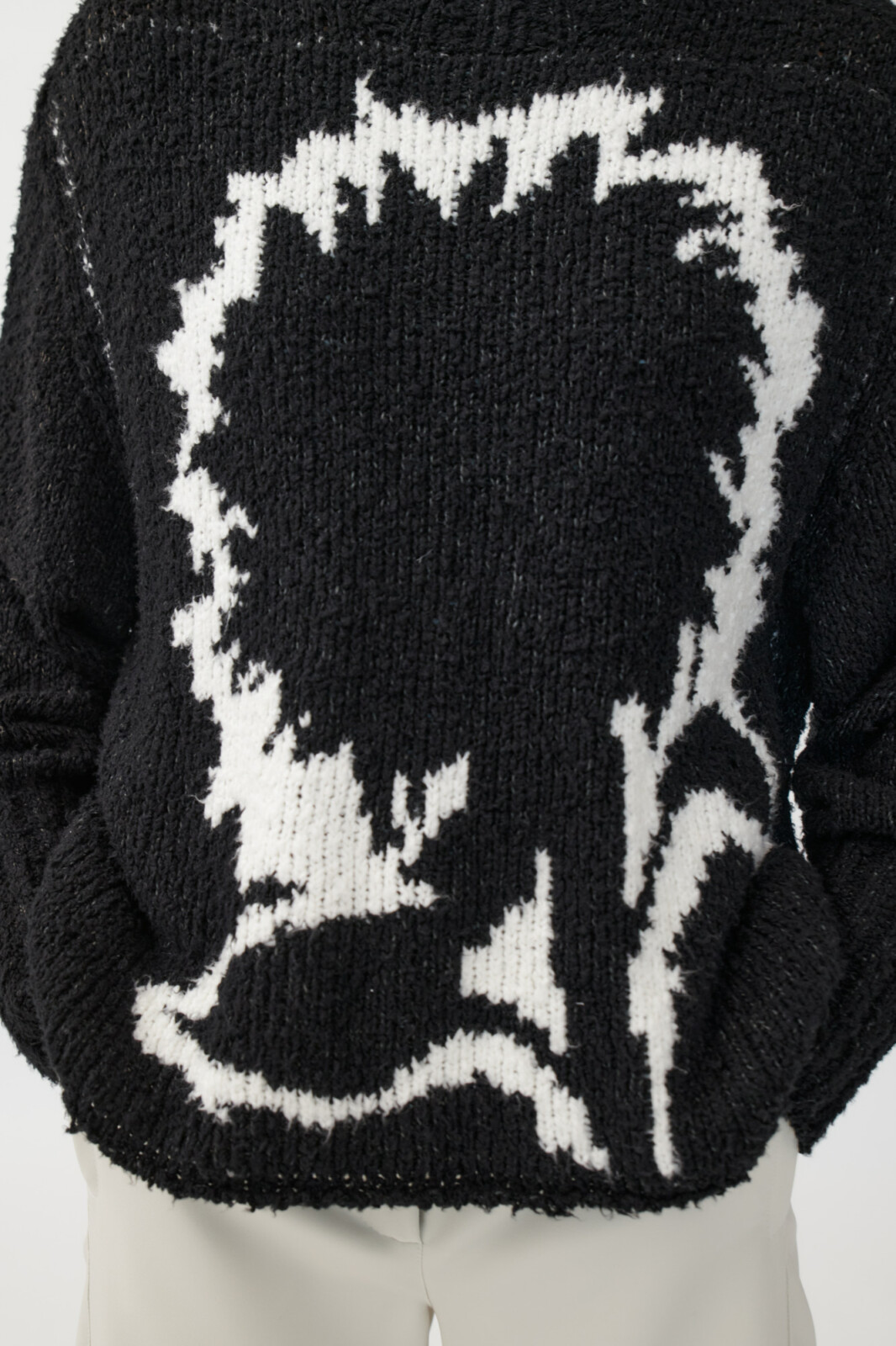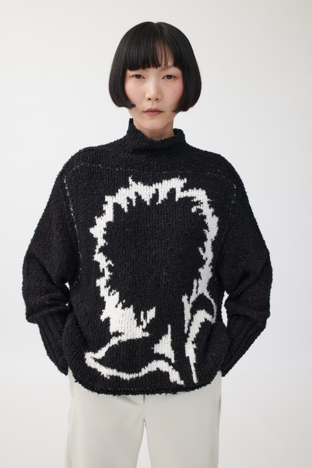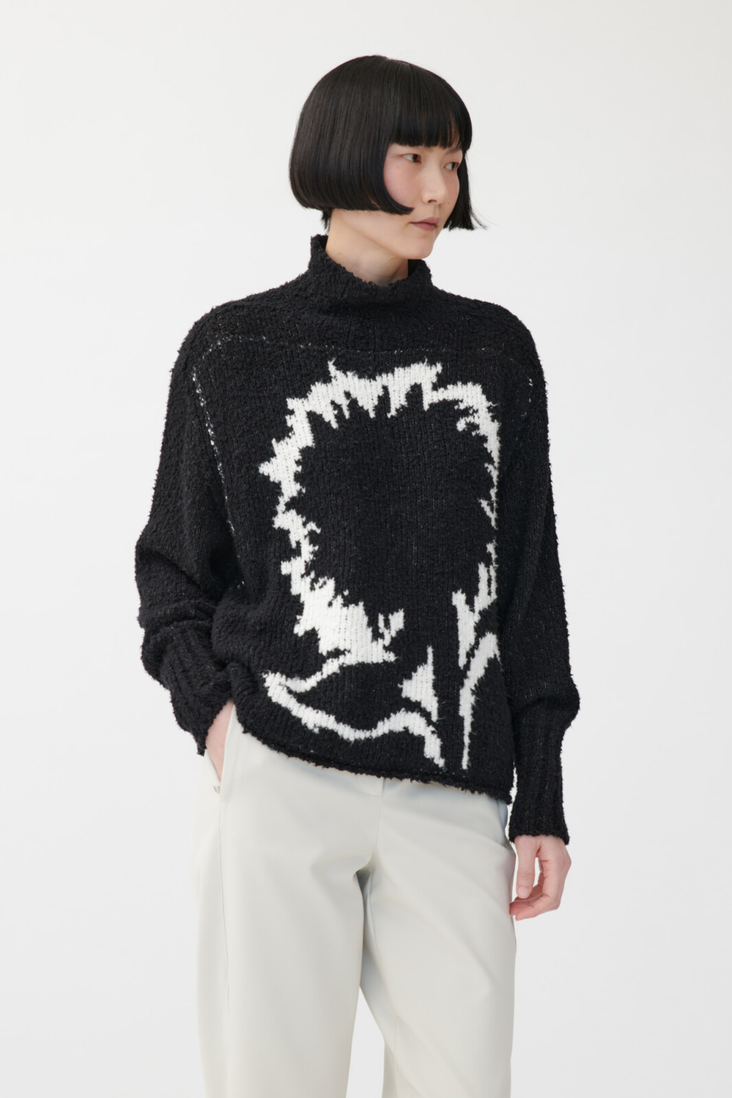 Short knitted sweater with floral motif in a silk blend, featuring a sunflower design.